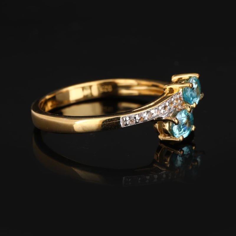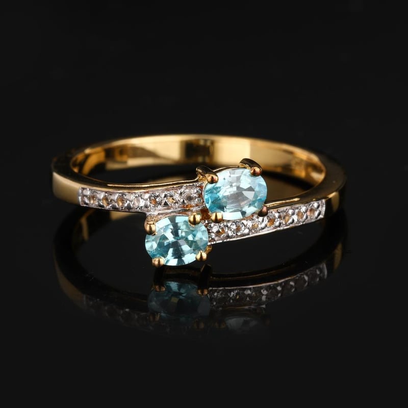 Indulge in the ethereal charm of this exquisite ring duo, featuring two captivating blue zircon stones, each elegantly cut into a stunning oval shape of 5x4mm. These rare gems, renowned for their mesmerizing blue hues that evoke the depths of the ocean and the clarity of a summer sky, are beautifully complemented by 14 sparkling round white topaz stones, each measuring 1.20mm.