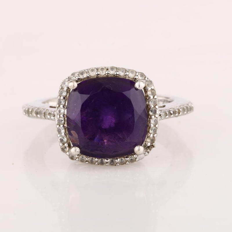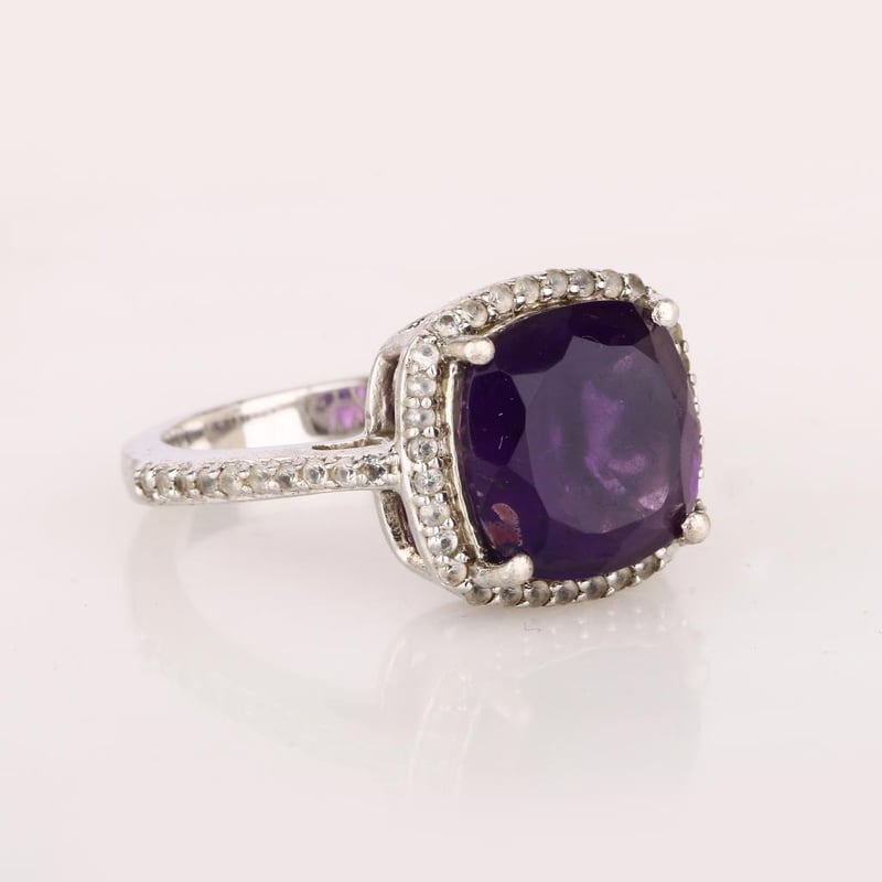Majestic Cushion-Cut African Amethyst Ring with Dazzling White Topaz Accents