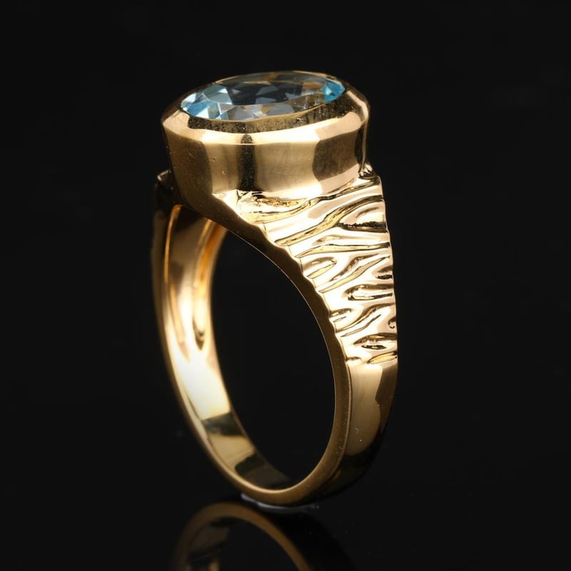 Elegant Blue Topaz Oval Ring with Smooth Wave Texture