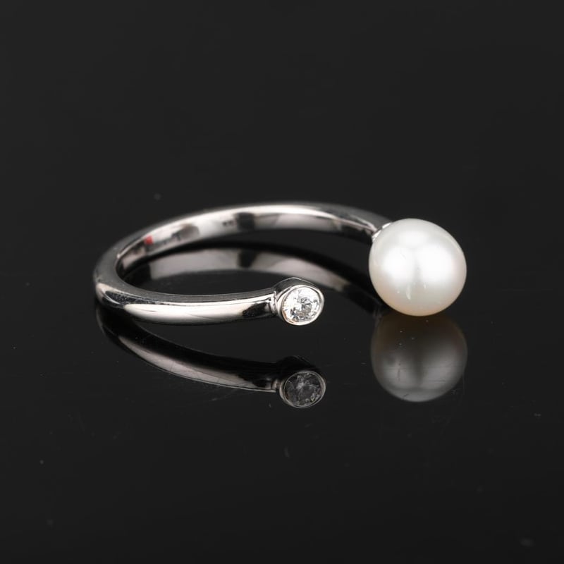 Elegant Pearl Drop Ring with White Cubic Zirconia Accents