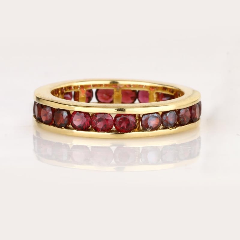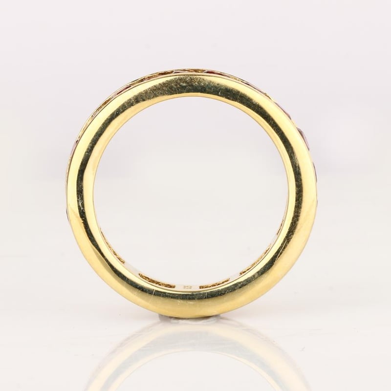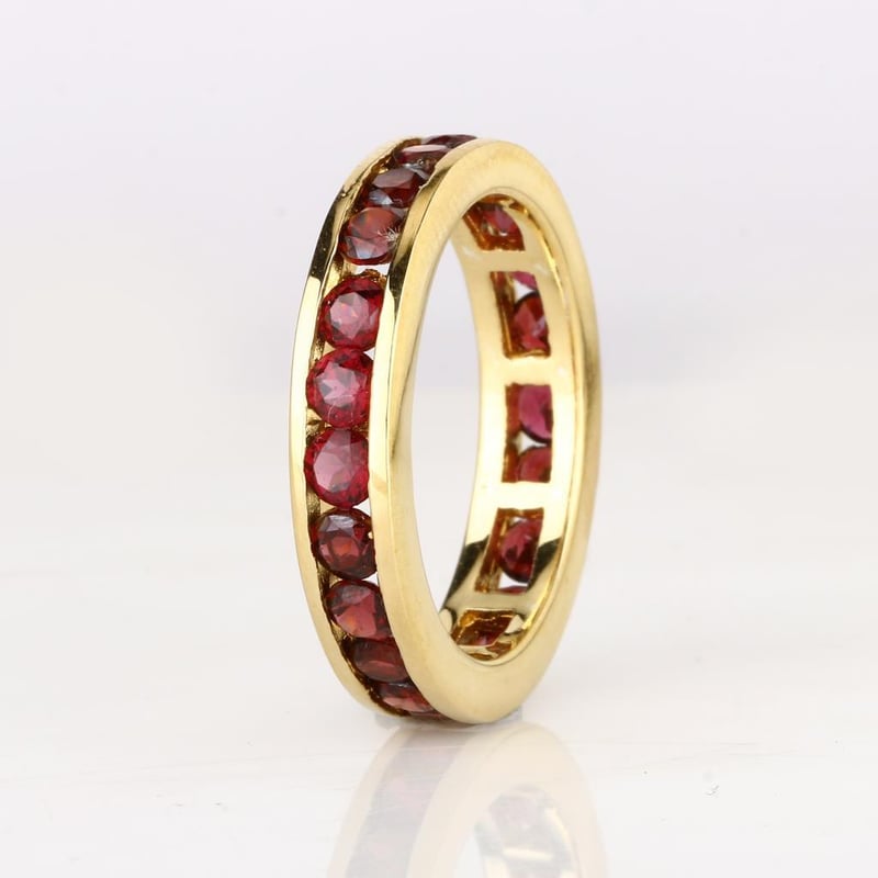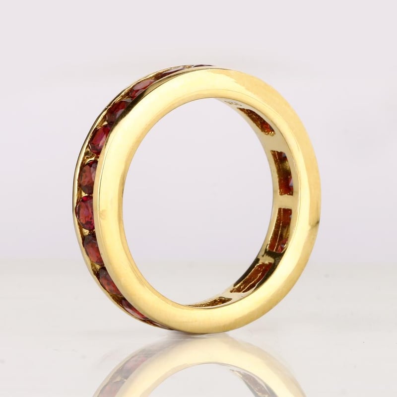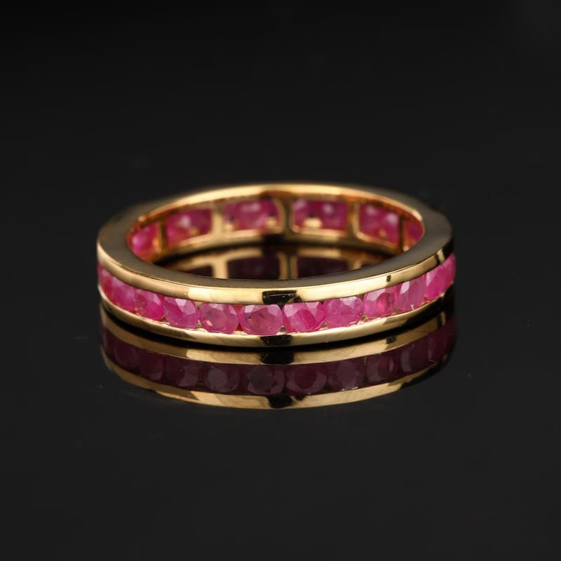 Crafted with an exquisite 5.00mm wide band, this ring boasts a robust yet graceful silhouette that comfortably embraces the finger, making it a perfect statement piece for any occasion. The harmonious interplay between the dazzling rubies and the lustrous metal creates a visual masterpiece that is both timeless and contemporary.