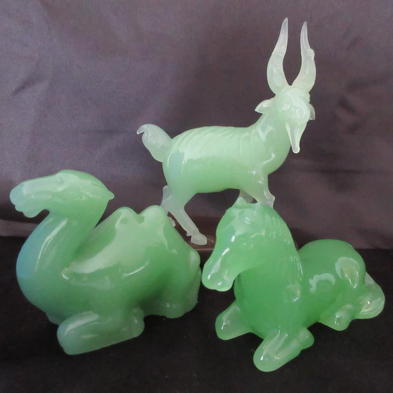 Estate (3) x Heavy Carved Jade Green Animal Figure