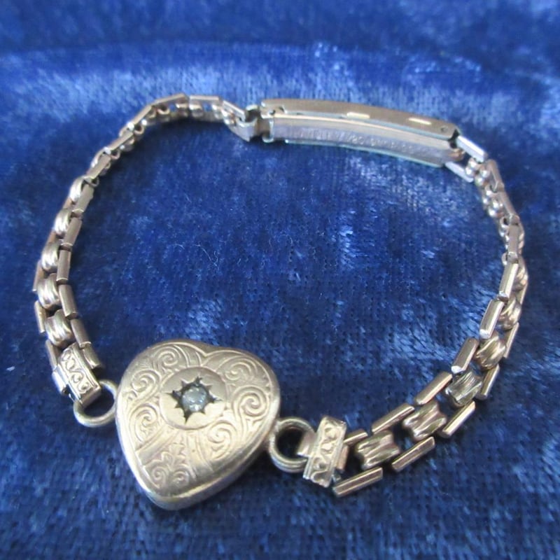 Estate 9CT Rolled Gold White Stone Heart Locket Br