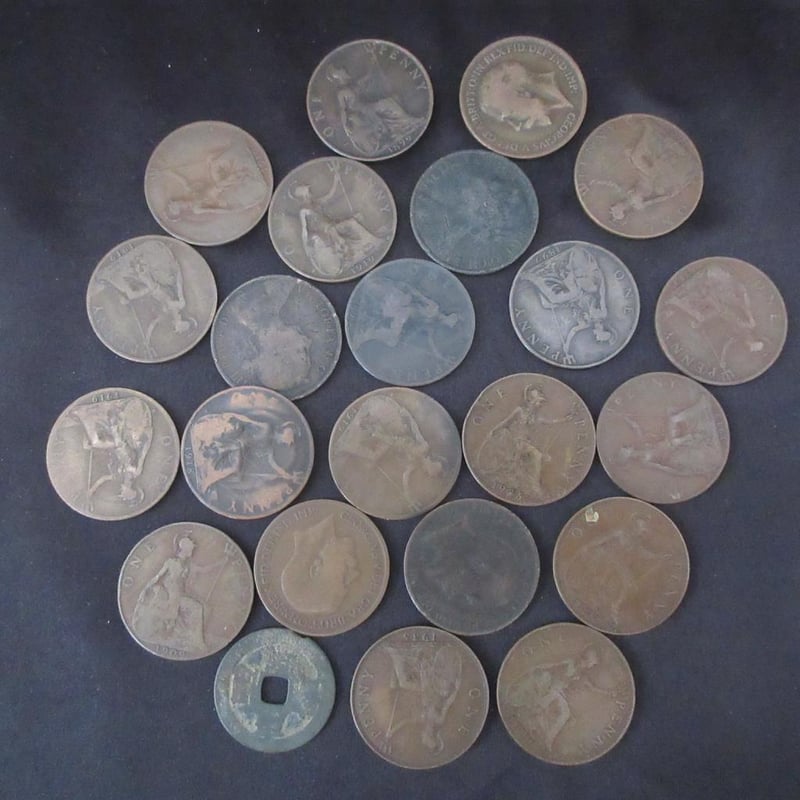 Estate (22) x Antique & Vintage British Pennies Fr