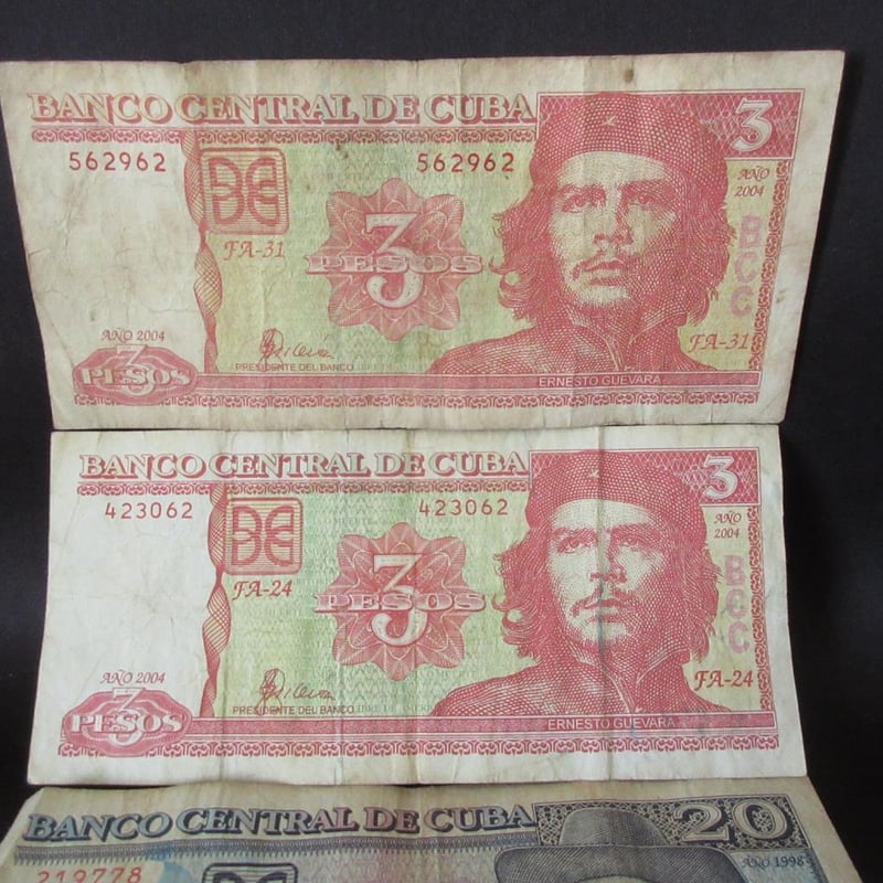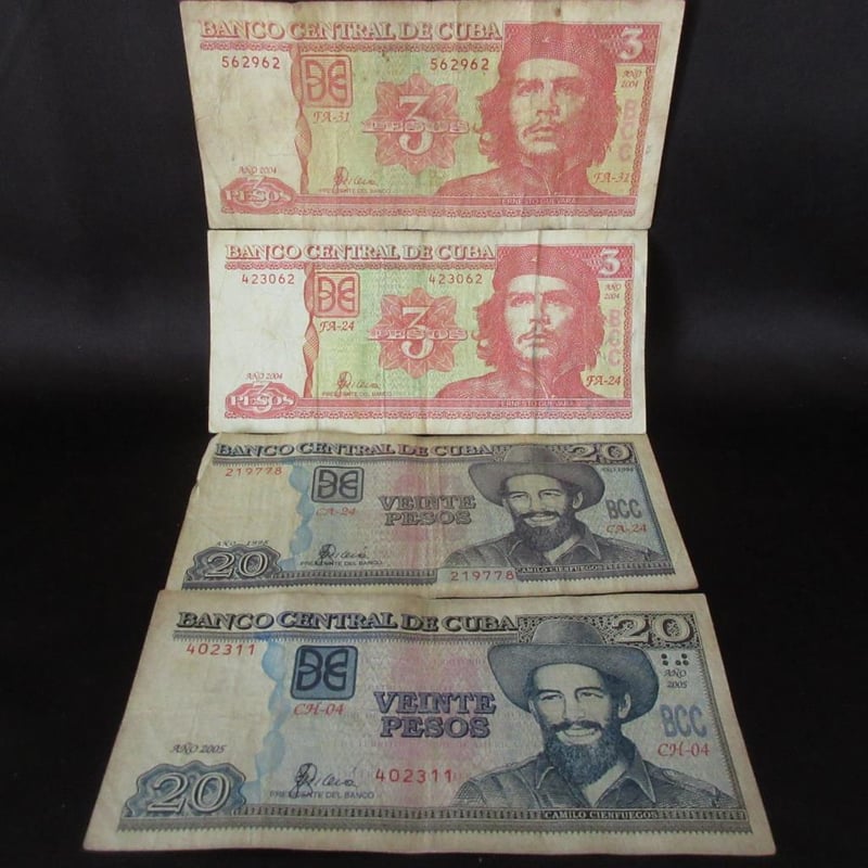 Estate (4) x Cuban Bank Notes - (2) x (3 Pesos) Fe