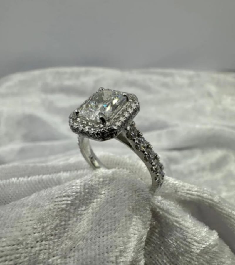 2.99 TCW RADIANT CUT LAB GROWN AND NATURAL DIAMOND HALO RING
