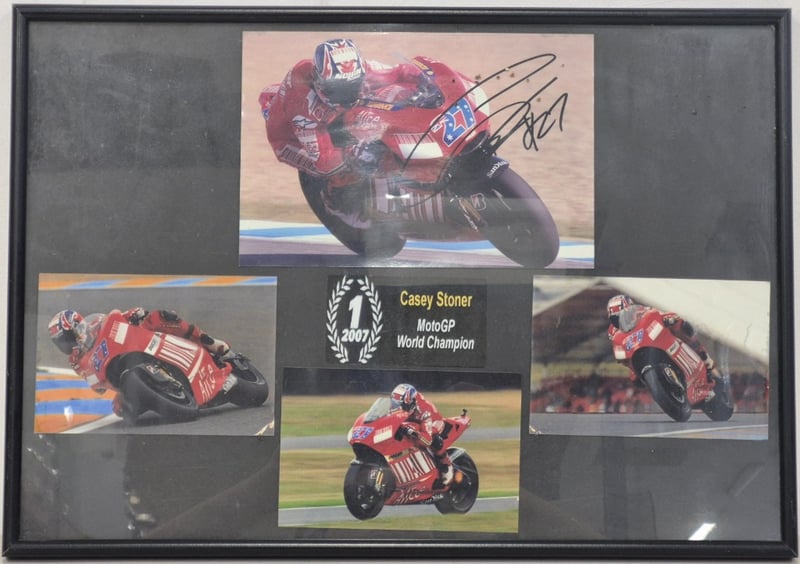 CASEY STONER 2007 MOTOGP WORLD CHAMPION SIGNED FRAMED PHOTOS AItem Size: Height: 35cm, Width: 50cm, Depth: 2cmCondition: Good - Refer To Images2A586369+2
