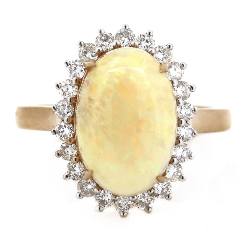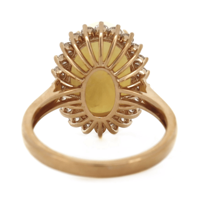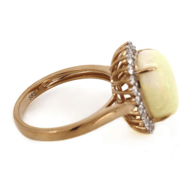 14K ROSE GOLD, SOLID OPAL AND DIAMOND, HALO RING.