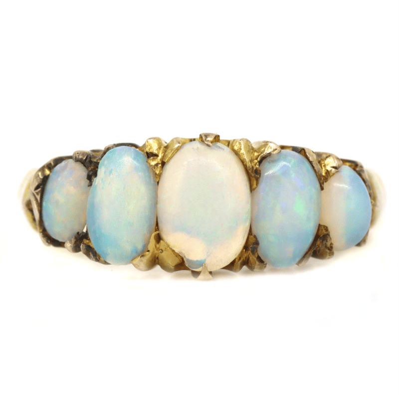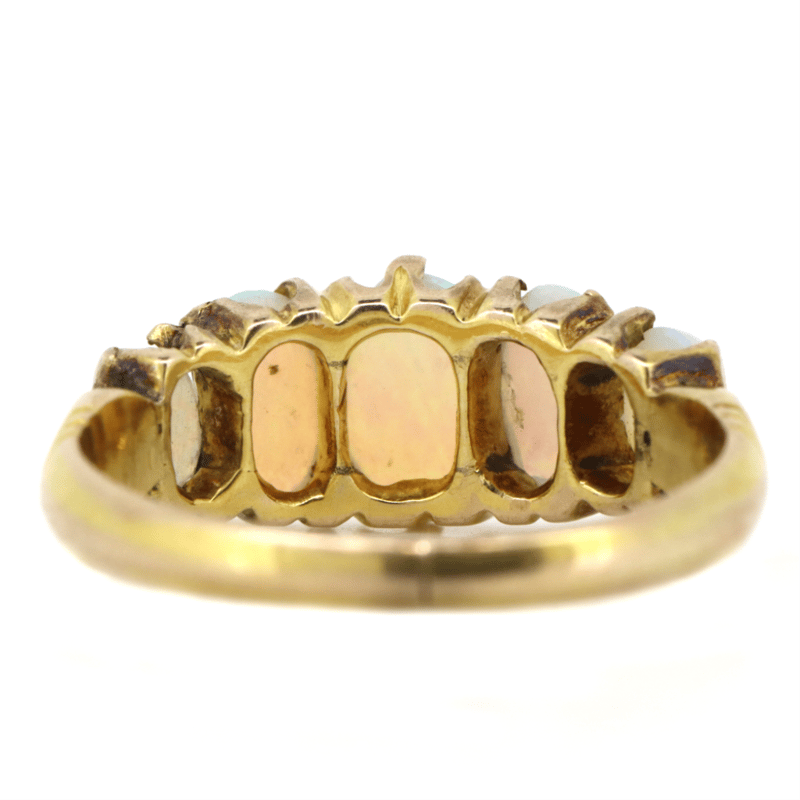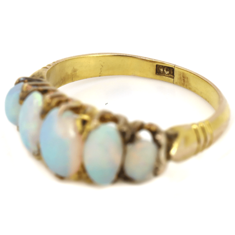 9K YELLOW GOLD, OPAL ETERNITY RING.