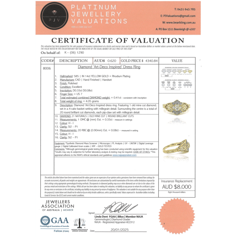 This valuation has been conducted by an independent third-party professional. The valuation amount is an assessment by the issuing valuer and does not reflect the auction value of the item.