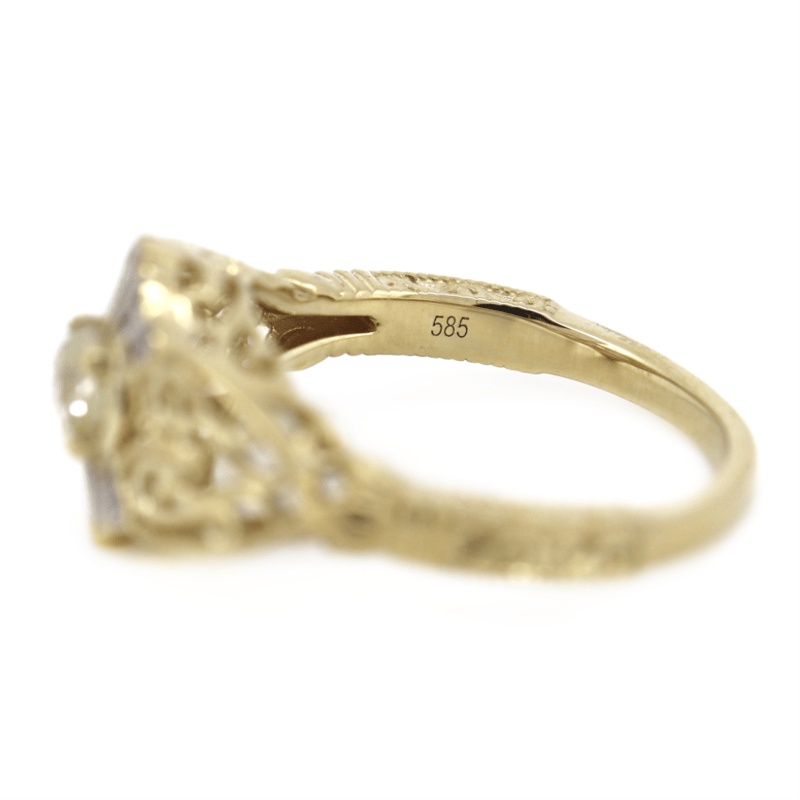 14K YELLOW GOLD AND DIAMOND, ART DECO INSPIRED RING.