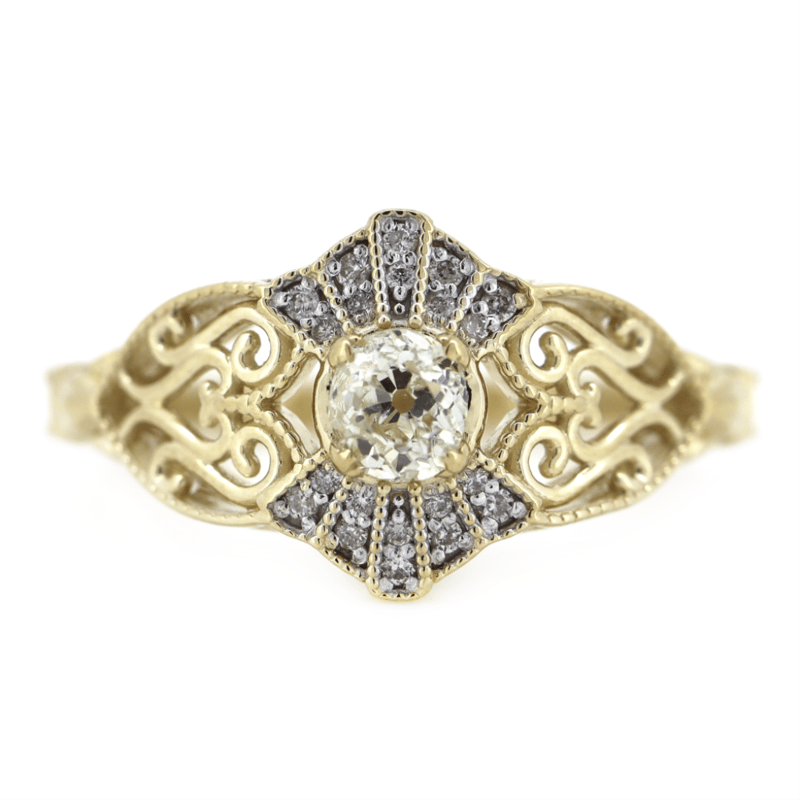 The Centre Features, One Old Mine Cut, Diamond (0.33Ct, H-I Colour, Si2-P1 Clarity), Claw Set. Embellishing The Design Are, 20 Round Brilliant Cut, Diamonds (0.08Ct Tdw, H-I Colour, Si2-P1 Clarity), Micro-Bead Set With Millegrain Accents. Ring Size N 1/2.