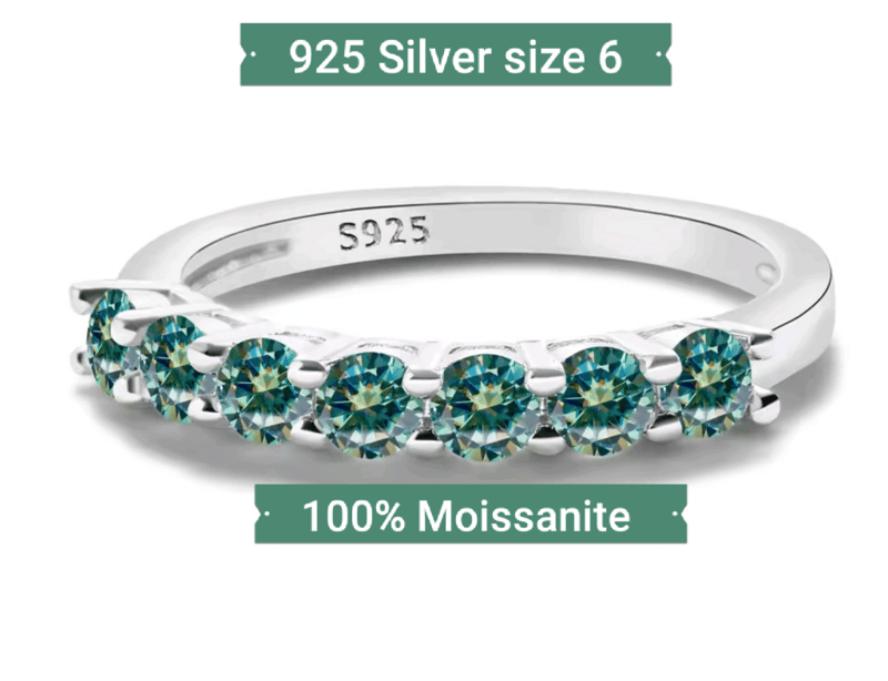 GRA CERTIFIED MOISSANITE BLUE GREEN 7 STONE RING