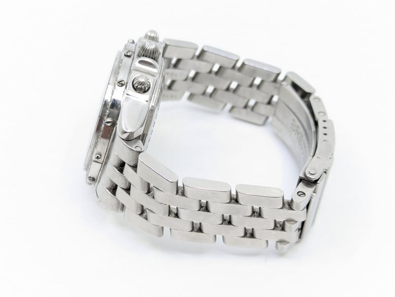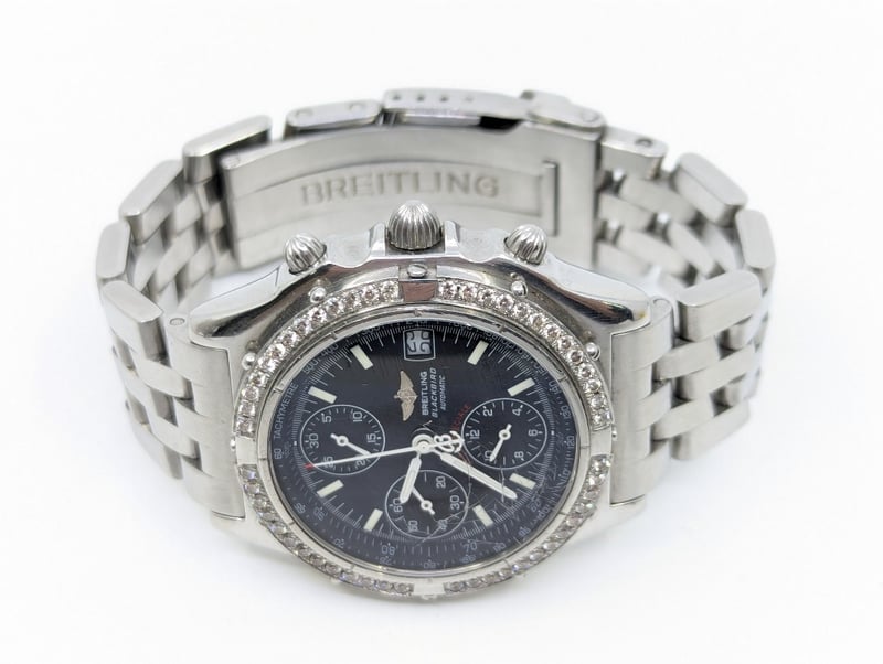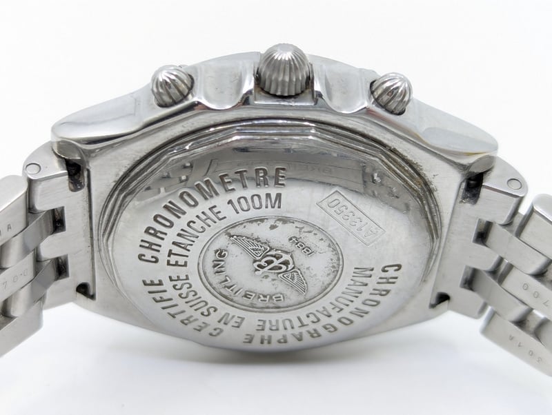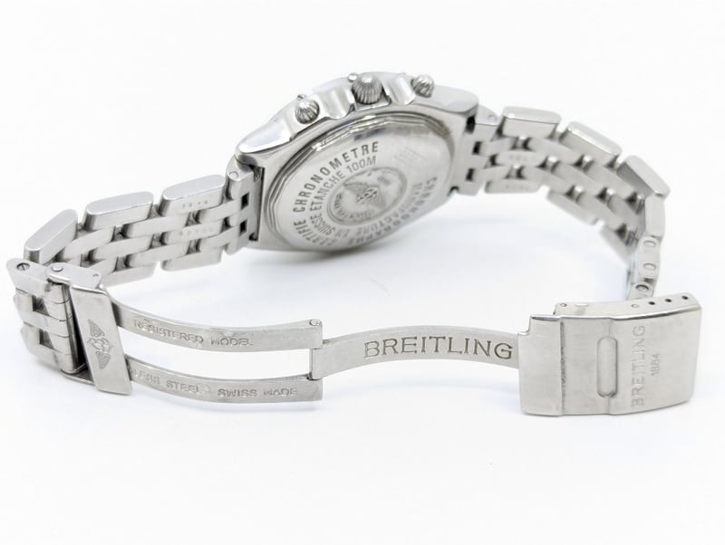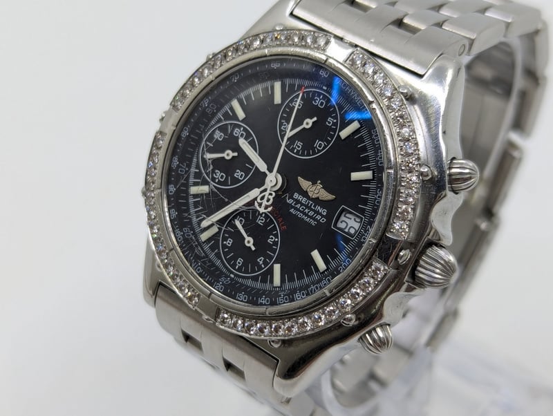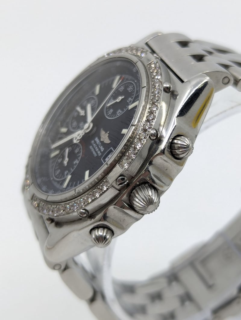 BREITLING BLACKBIRD CASE DESCRIPTION: STAINLESS STEELCASE SIZE: 38MMBRACELET: STAINLESS STEELMOVEMENT: AUTOMATICBOX: NOT INCLUDEDPAPERS: NOT INCLUDEDCondition: Good - Refer To ImagesAdditional Information: Black DialNon Numerical HourmarkersDate Display At 3 O'Clock Position3X ChronographFold ClaspMovement UntestedVAULT582880+2