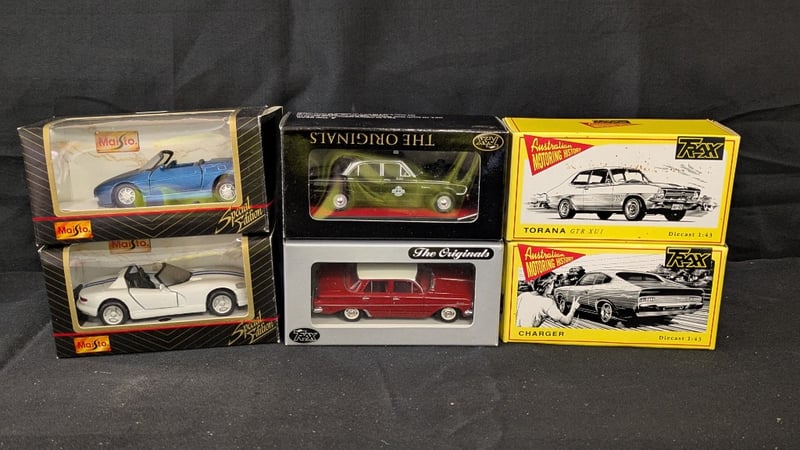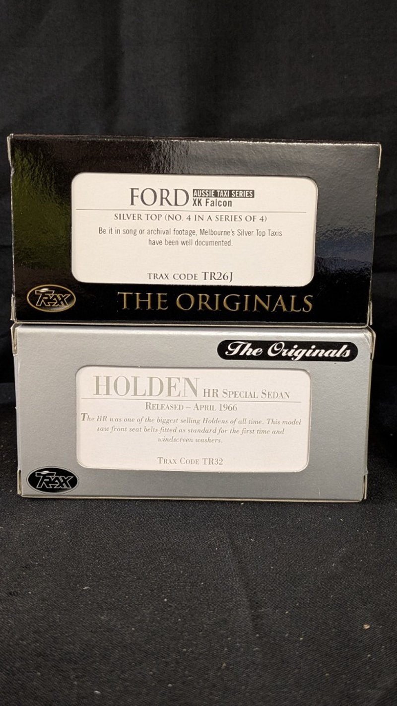 COLLECTION OF DIE CAST MODEL CARSMaisto Model Cars Trax Australian Motoring History Torana Gtr Xu1Trax Australian Motoring History Charger Trax Holden Hr Special Sedan Tr32Trax Ford Xk Falcon Aussie Taxi Series Silver Top #1 In Series Of 4 Tr26JCondition: Fair - Refer To ImagesSR233089+60