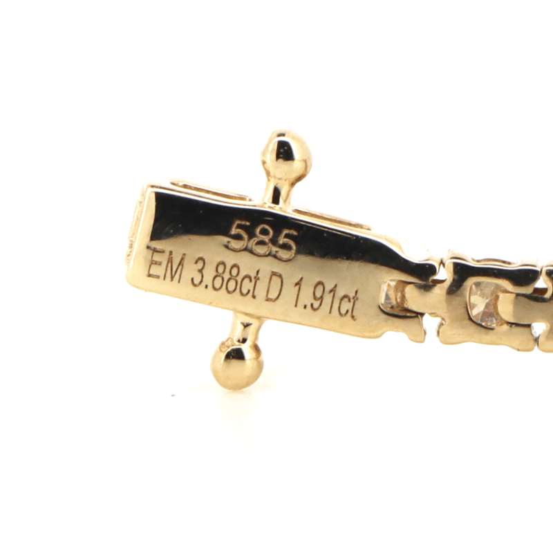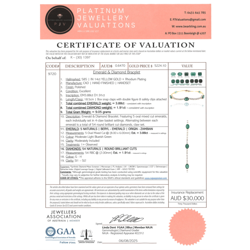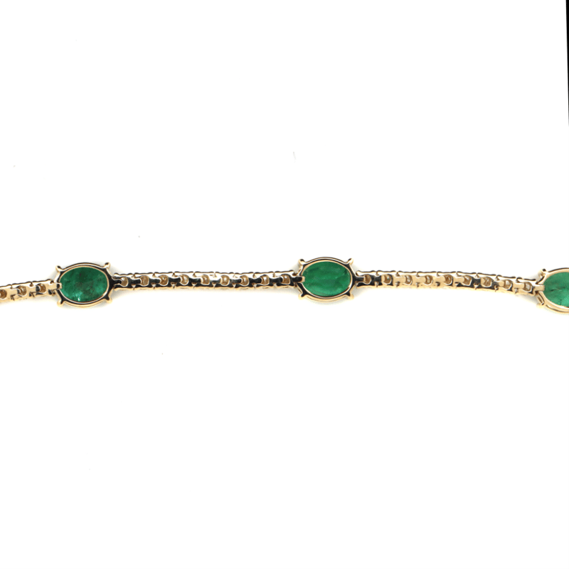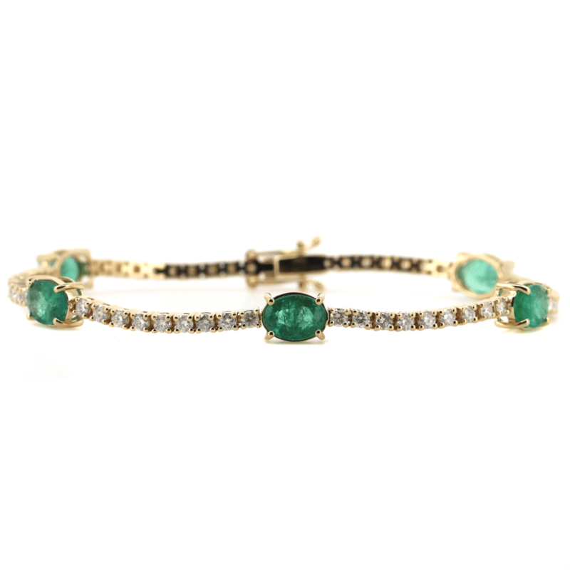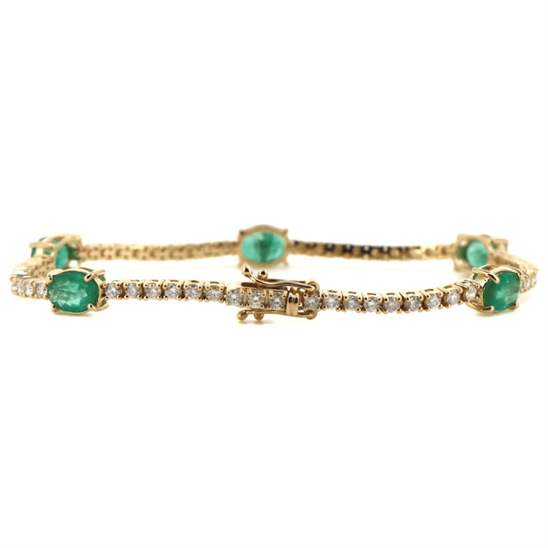 The Design Features, 5 Oval Mixed Cut, Emeralds (3.88Ct Tsw, Moderately Included), Claw Set. Alternating Between Are, 54 Round Brilliant Cut, Diamonds (1.91Ct Tdw, G-H Colour, Si1-Si2 Clarity), Claw Set. The Bracelet Has A Hidden Box Lock Closure With 2 Safety Clips. Bracelet Length Is 18.5Cm.
