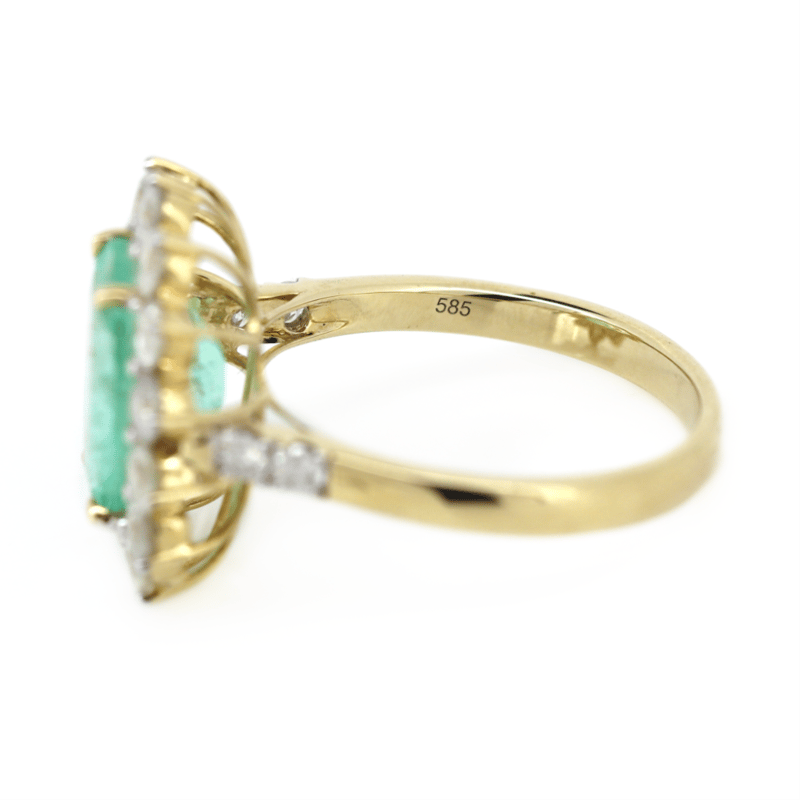 14K YELLOW GOLD, 3.86CT COLOMBIAN EMERALD AND DIAMOND, VINTAGE INSPIRED RING.