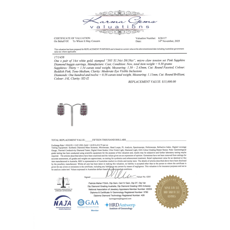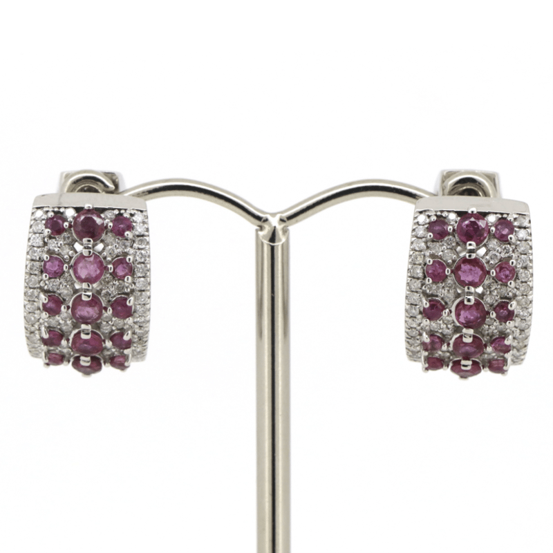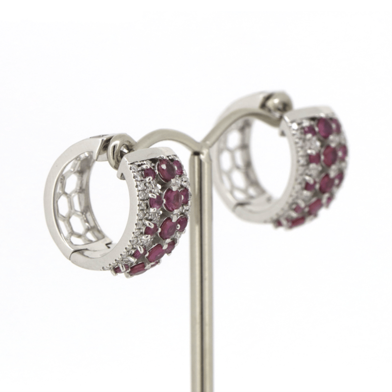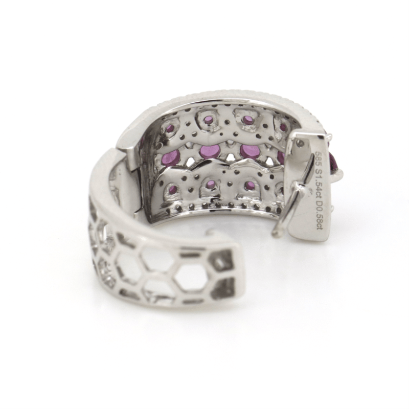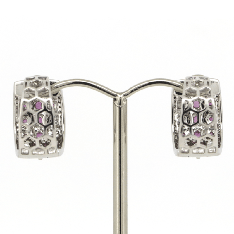 The Design Features, 30 Round Cut, Fancy Reddish-Pink, Sapphires (1.54Ct Tsw, Moderate Eye Visible Inclusions), Claw Set. Accompanied By, 112 Round Brilliant Cut, Diamonds (0.58Ct Tdw, J-K Colour, Si2-I2 Clarity), Micro-Claw Set/Tension Set. The Earrings Have Post Backs, With Lever Back Closures.