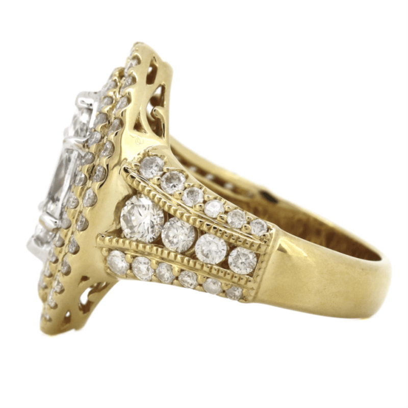 14K YELLOW/WHITE GOLD AND DIAMOND, DOUBLE HALO RING.