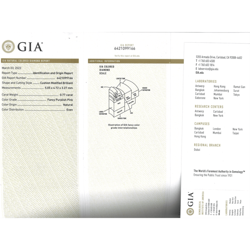 0.77CT CERTIFIED, NATURAL FANCY PURPLE/PINK DIAMOND