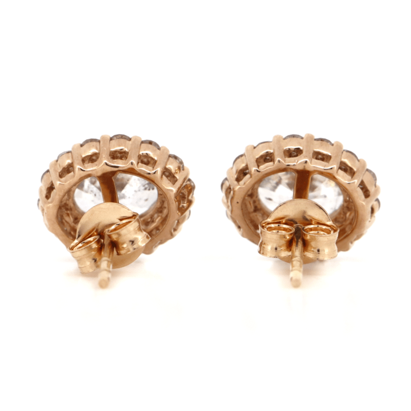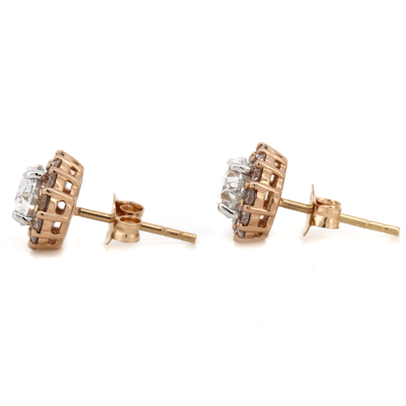14K ROSE GOLD, FANCY PINK DIAMOND AND DIAMOND, HALO STUD EARRINGS.