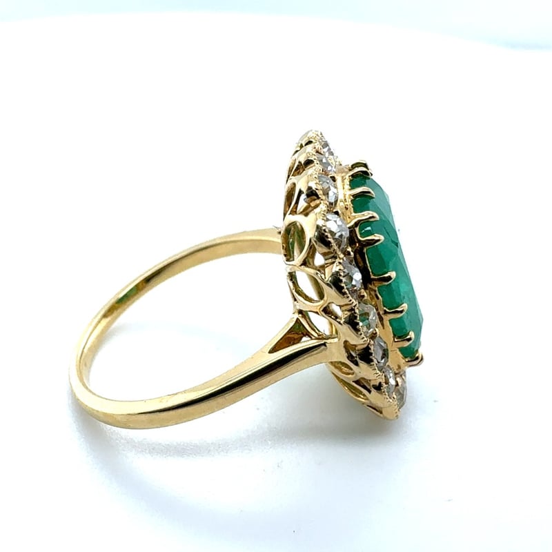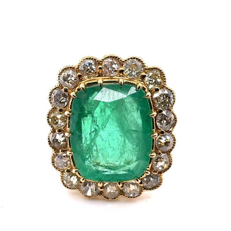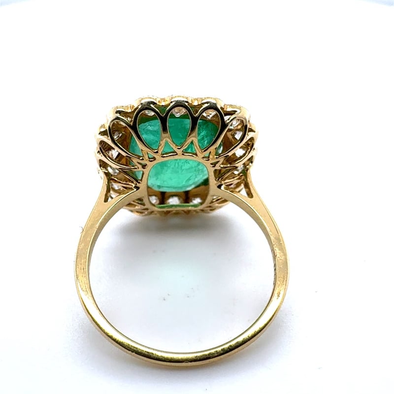 18CT YELLOW GOLD CUSHION CUT EMERALD AND DIAMOND RINGE = 4.92CtD = 1.30CtVal #71841Condition: Good - Refer To ImagesThis valuation has been conducted by an independent third-party professional. The valuation amount is an assessment by the issuing valuer and does not reflect the auction value of the item.Any inquiries regarding the valuation should be directed to the issuing valuer (refer to contact details on the certificate), as Lloyds Auctions has no affiliation or influence over the valuation, the valuer, or the stated amount.Insurance Replacement Valuation Amount: $28,968.00488487+64