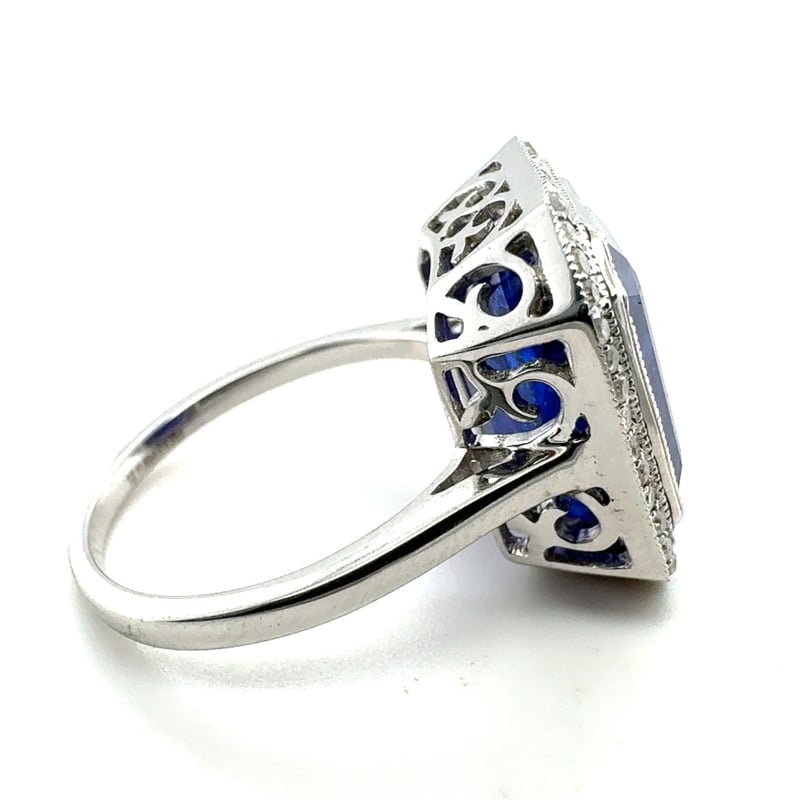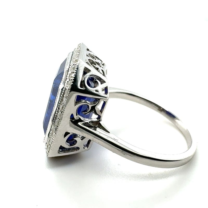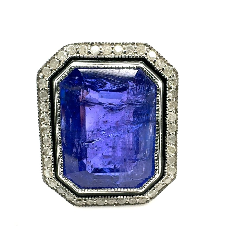 14CT WHITE GOLD EMERALD CUT TANZANITE AND DIAMOND RING