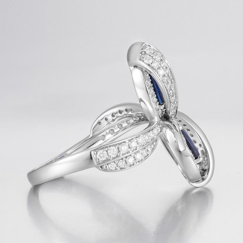 14CT WHITE GOLD CEYLON SAPPHIRE AND DIAMOND COCKTAIL RING