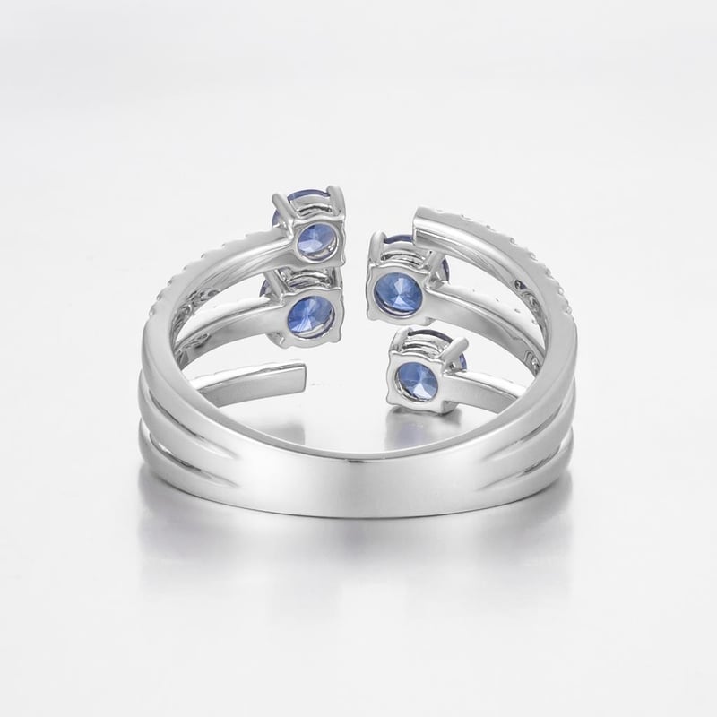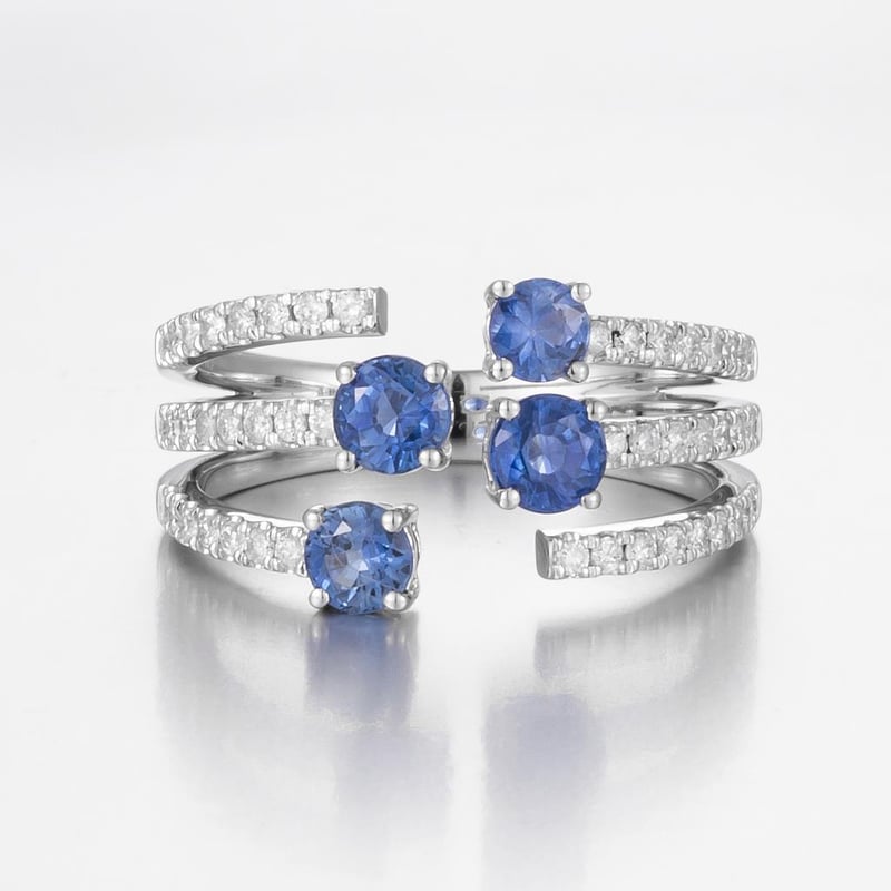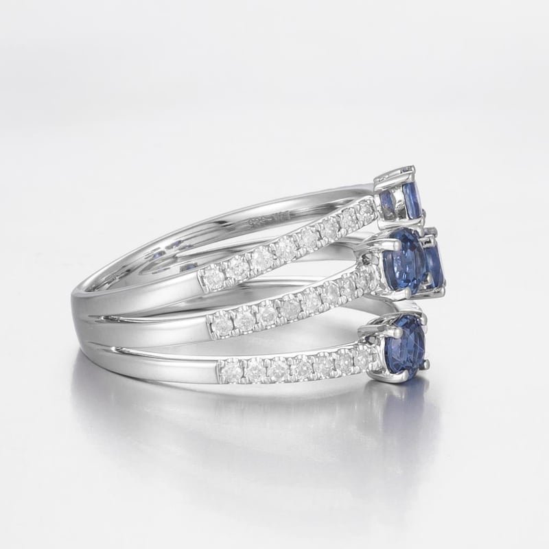 14CT WHITE GOLD CEYLON SAPPHIRE AND DIAMOND STACKER INSPIRED RING