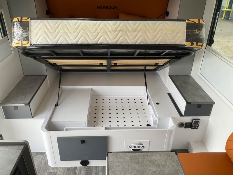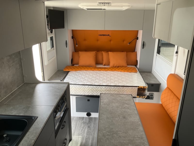 2. Walk-on One-Piece Roof – Extra strong 32mm XPS sandwich panel with 2mm fiberglass skins and fiberglass & Alloy RHS frame;