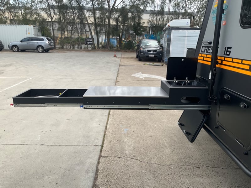 • Outdoor Slide-out Kitchen Bench with Sink and BBQ gas connection;