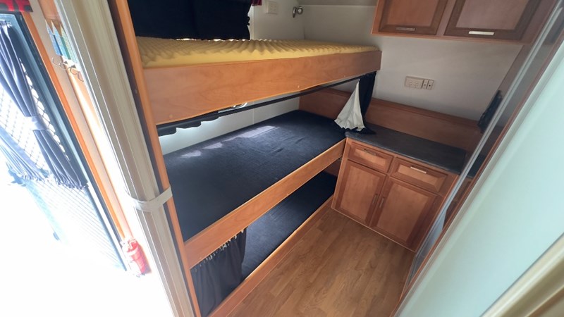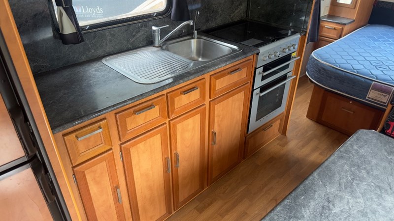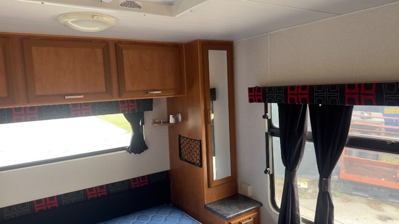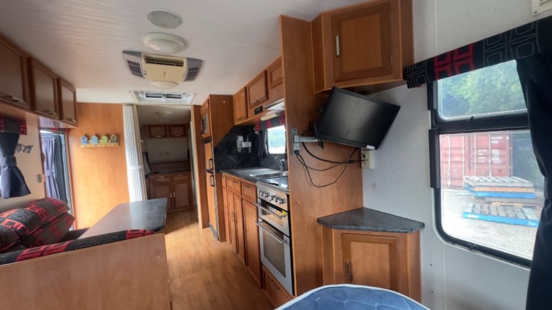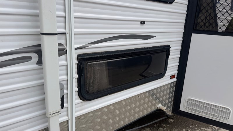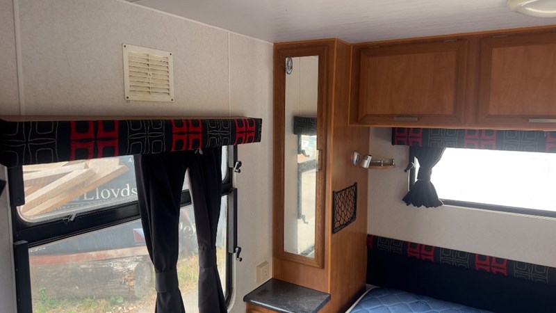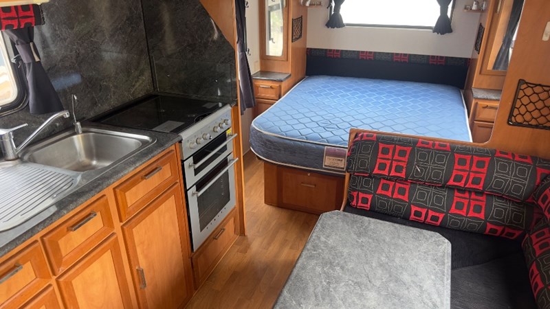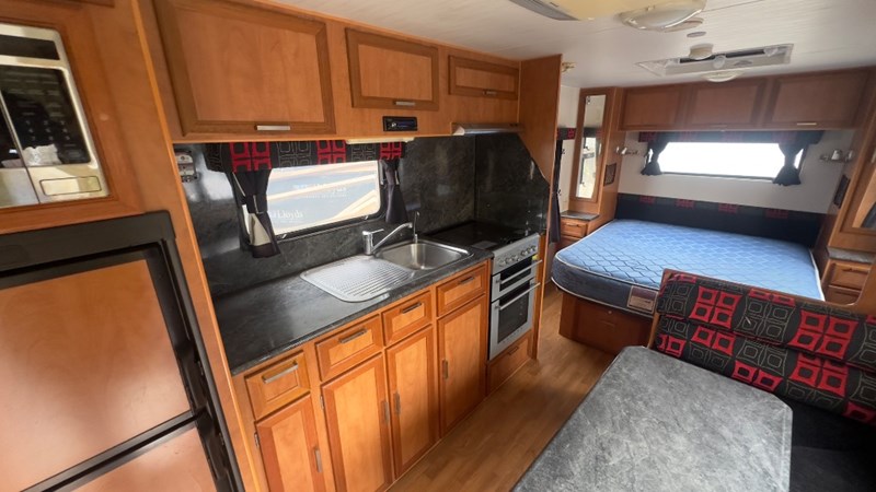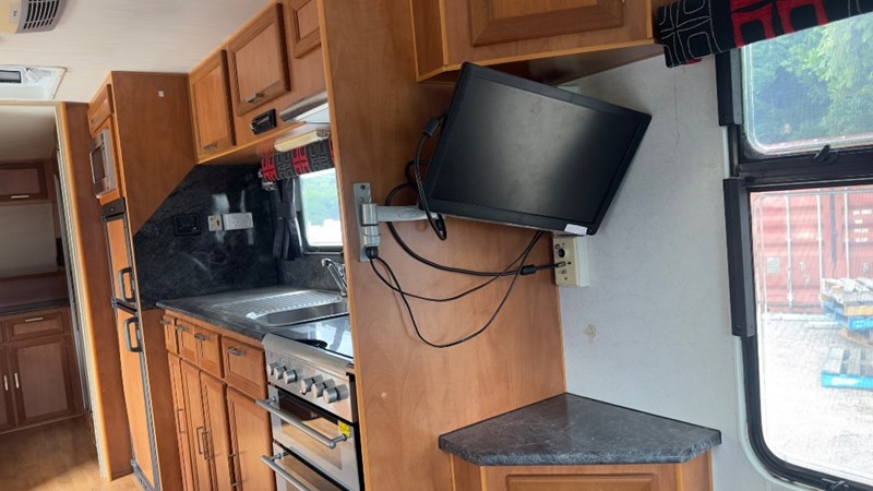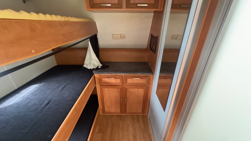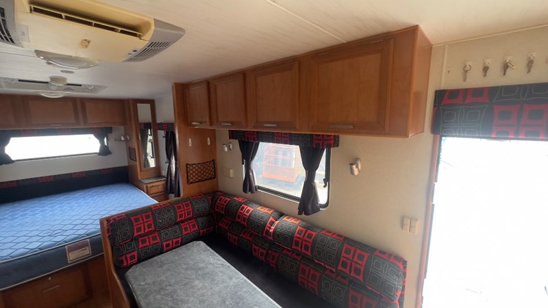 Interior Features, Lockable Entry With Flyscreen, Hybrid Timber Look Flooring, Dinning Table With L-Shaped Couch, Dometic Fridge/Freezer, LG Microwave, Single Stainless Sink, Counter Top, Oven/Grill, Hotplates With Rangehood, Pro Star 30 Solar Control, Enclosed Shower, Enclosed Toilet/Bathroom, 3 Person Bunk, 1 x Double Matress, Flat Screen T.V, Dometic Air System, Loads Of Storage Cabinets And Cupboards