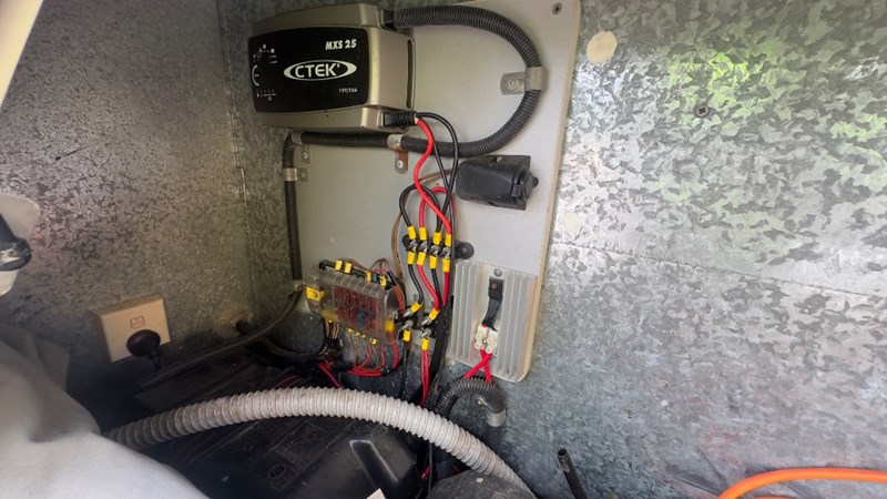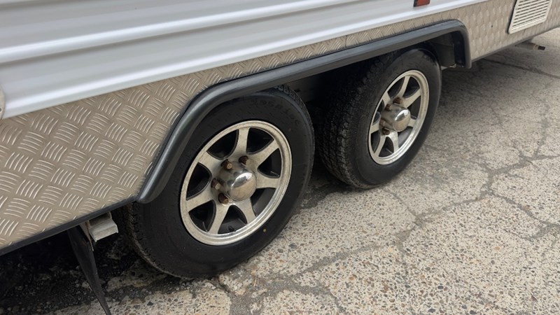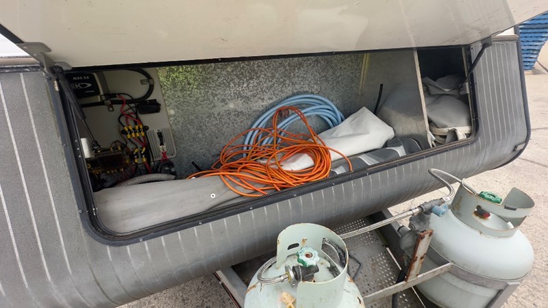 Description/Extras: Exterior Fearures, 50mm Tow Socket, Heavy Duty Stand, Handbrake With Breakaway, 7Pin Flat Male Connector, 2 x 9kg Gas Bottles In Holders, Tap Mounted To Drawbar, Front Storage Includes Tarps, Hoses, 2 x Batteries In Cases, Ctek MXS25 Inverter/Power Board, 240v Socket, Exterior Shower, 2 x Spare Tyres, Solar Panel x 1, 1 x Large Retractable Awning.