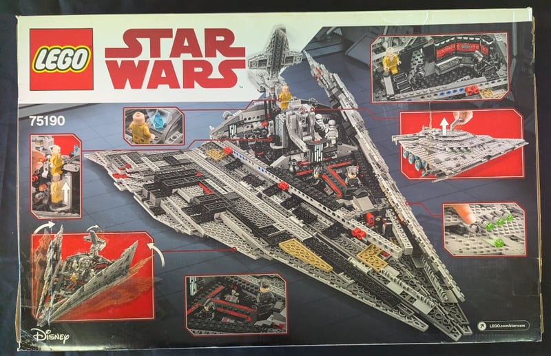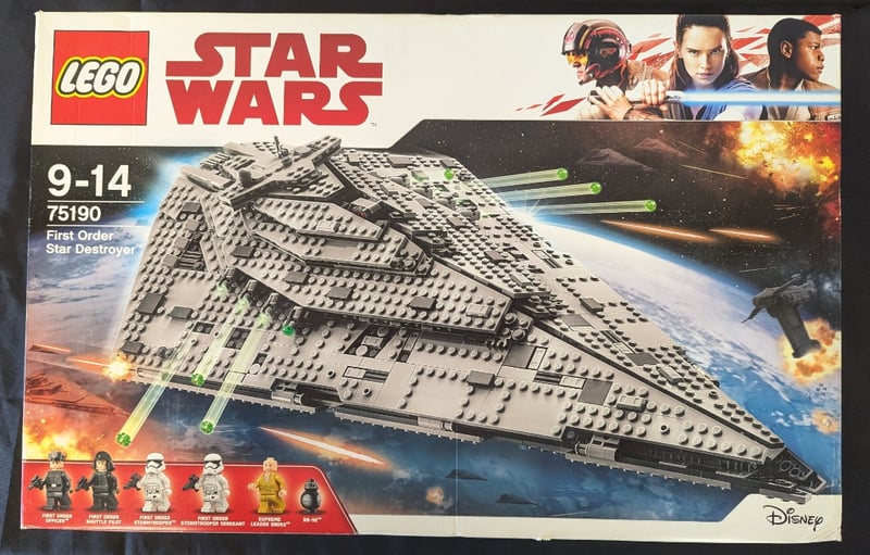 LEGO STAR WARS FIRST ORDER STAR DESTROYER SET 75190 Lego Star Wars First Order Star Destroyer (Set 75190) Featuring 1,416 Pieces With Six Minifigures Including First Order Officers, Stormtroopers, And Supreme Leader Snoke. This Substantial Buildable Spacecraft Model Showcases Intricate Architectural Detailing With Articulated Turrets, Removable Sections, And A Command Bridge. The Set Includes Authentic First Order Insignia And Weaponry, Designed For Ages 9-14. Condition: Good - Refer To Images 584518+225