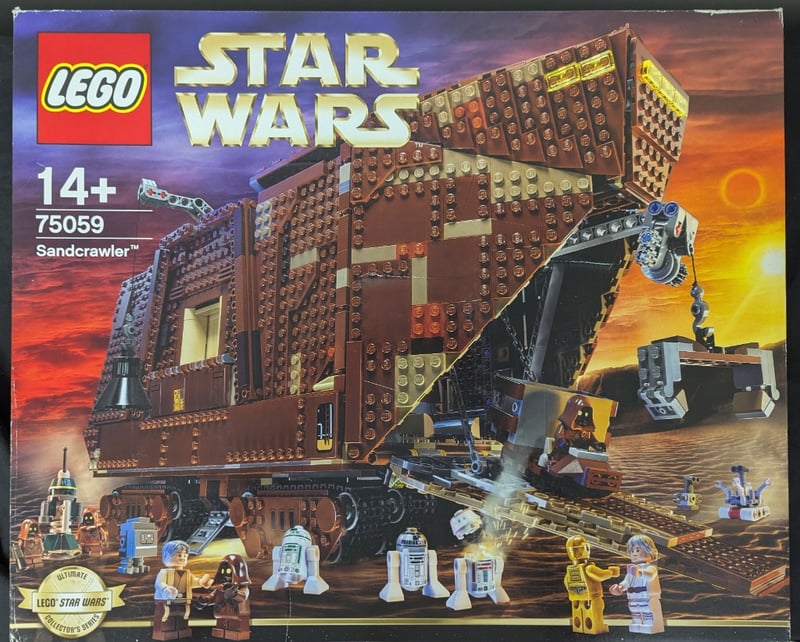 LEGO STAR WARS SANDCRAWLER SET 75059 - ULTIMATE COLLECTOR SERIES Retired Lego Star Wars Ultimate Collector Series Set 75059 Sandcrawler Featuring Intricate Brown And Tan Brick Construction, Motorized Walking Mechanisms, Detailed Interior Compartments, Cargo Loading Ramp, Multiple Minifigures Including R2-D2, C-3Po, And Jawas, Original Sealed Packaging With Comprehensive Instruction Manual And Authentic Collectible Builder'S Series Credentials. Condition: Good - Refer To Images 584518+201
