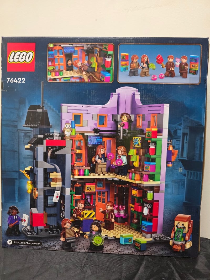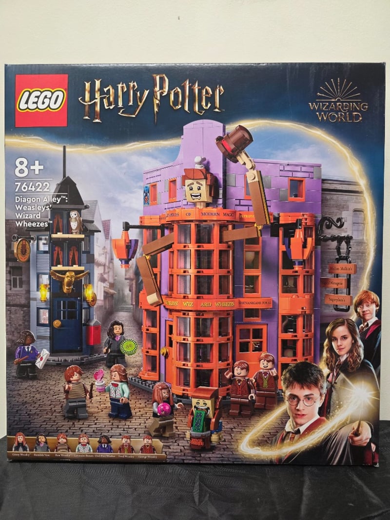 LEGO HARRY POTTER DIAGON ALLEY WIZARD WEASLEYS SET 76422 Item Size: Height: 40cm, Width: 35cm, Depth: 15cm, Weight: 0.2Kg Lego Harry Potter Set 76422 Featuring The Iconic Diagon Alley Weasleys' Wizard Wheezes Shop. This Comprehensive Building Set Includes A Detailed Three-Storey Structure With Vibrant Purple And Orange Brick Construction, Adjacent Dark Tower Building, And Extensive Minifigure Collection Depicting Main Harry Potter Characters. The Set Showcases Intricate Architectural Detailing With Multiple Room Configurations, Functional Windows, And Accessories. Includes Approximately 10+ Minifigures Representing Condition: Good - Refer To Images 584518+115