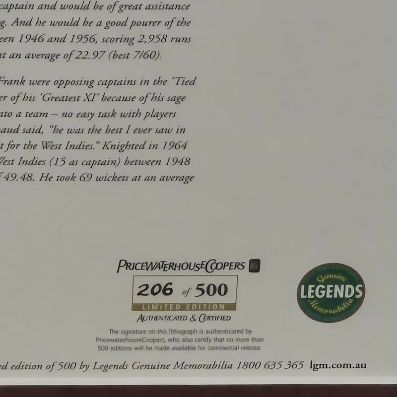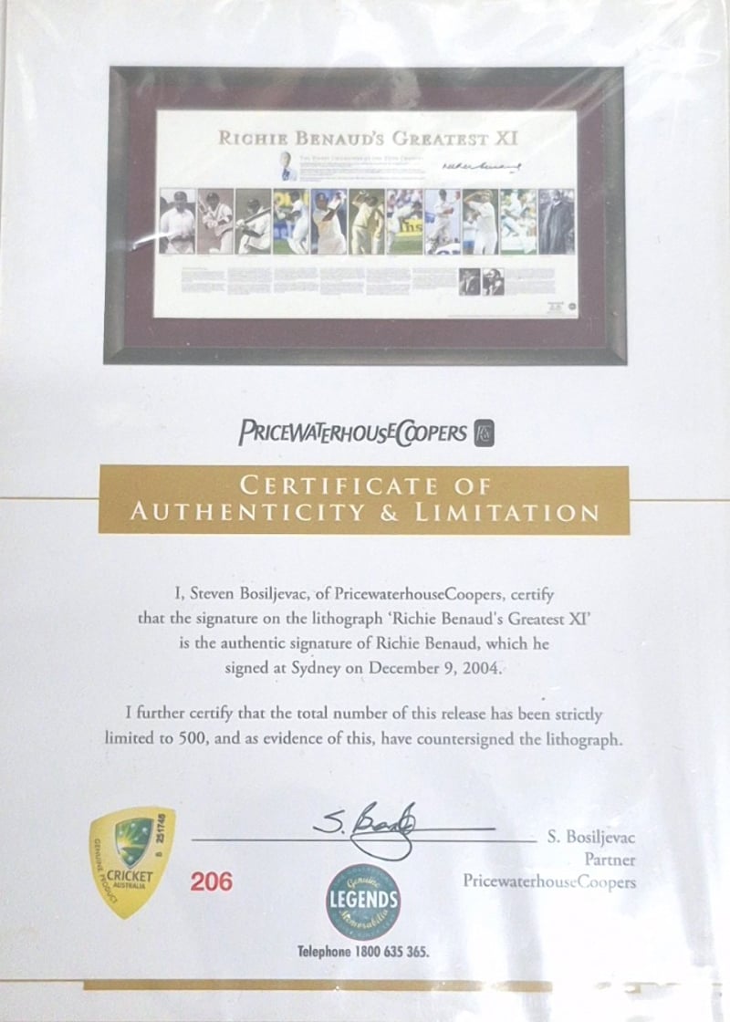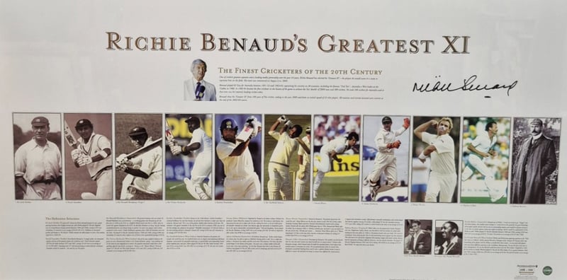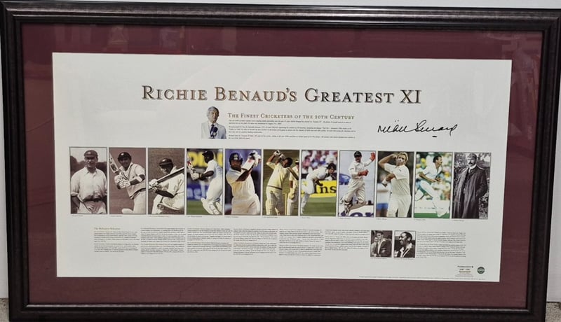 RICHIE BENAUD GREATEST XI SIGNED FRAME + COA