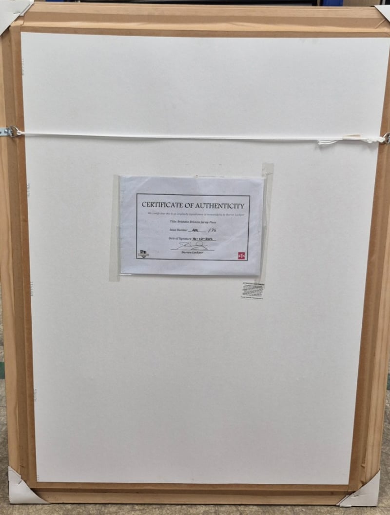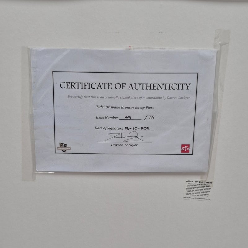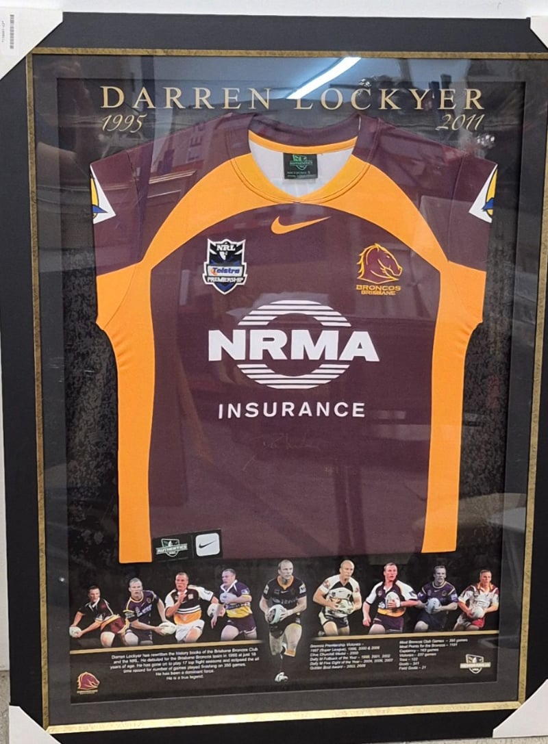 DARREN LOCKYER SIGNED BRISBANE BRONCOS JERSEY Item Size: Height: 112cm, Width: 85.5cm, Depth: 2cm Condition: Good - Refer To Images 587898+18
