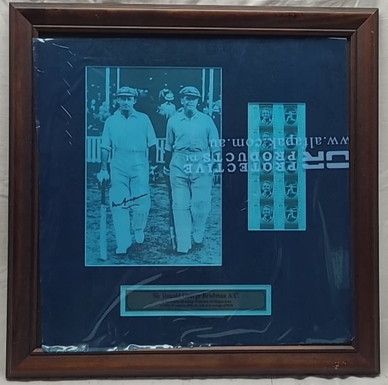 SIR DONALD GEORGE BRADMAN FRAMED AND SIGNED