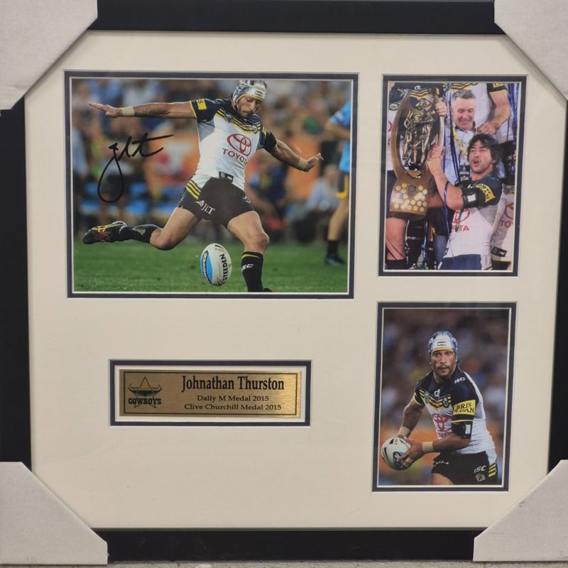 JOHNATHAN THURSTON SIGNED FRAMED DISPLAY Item Size: Height: 52cm, Width: 54cm, Depth: 2cm Condition: Good - Refer To Images 587898+4