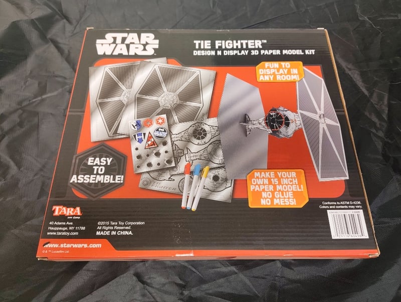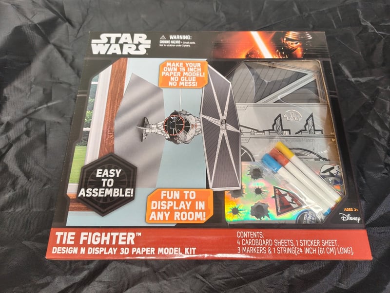 STAR WARS TIE FIGHTER DESIGN N DISPLAY 3D PAPER MODEL KITVintage Star Wars Tie Fighter 3D Paper Model Kit By Tara Toy Corporation, Featuring Pre-Printed Cardboard Sheets, Markers, Sticker Sheet, And Assembly Components. No-Glue Construction Design Creates A 15-Inch (61Cm) Tall Display Model. Includes Four Cardboard Sheets, Three Markers, One Sticker Sheet, And String. Easy Assembly For Ages 3+. Unopened, Vintage Collectible From The Force Awakens Era.Condition: Good - Refer To Images584522+279