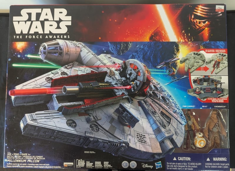 STAR WARS THE FORCE AWAKENS MILLENNIUM FALCON BATTLE ACTION PLAYSET WITH FINN, BB-8, AND CHEWBACCA FIGURES