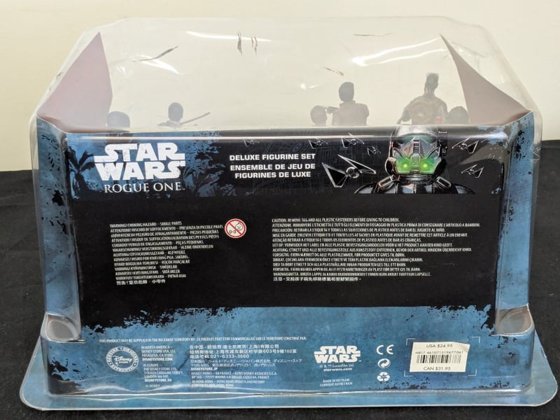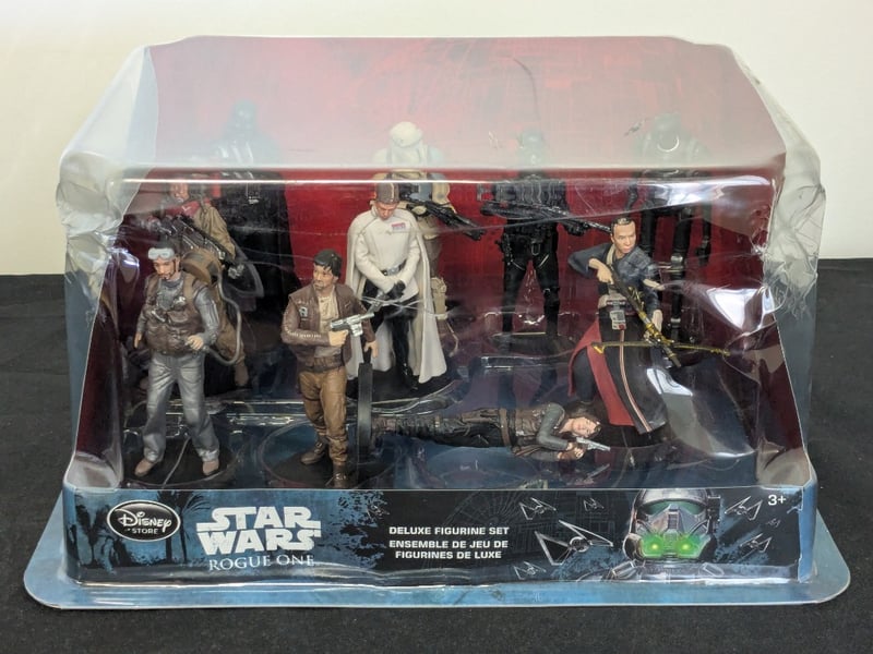 STAR WARS ROGUE ONE DELUXE FIGURINE SET - DISNEY STORE COLLECTIBLEDisney Store Star Wars Rogue One Deluxe Figurine Set Featuring Multiple Articulated Characters In Authentic Film Costumes. Original Packaging With Clear Acrylic Clamshell Case And Printed Cardboard Backing. Set Includes Detailed Miniature Figures With Weapons And Accessories. Multilingual Safety Warnings And Product Information Visible On Reverse. Age 3+ Rating Indicated. Retail Pricing Visible (Usd $24.95, Cad $31.95).Condition: Good - Refer To Images584522+182