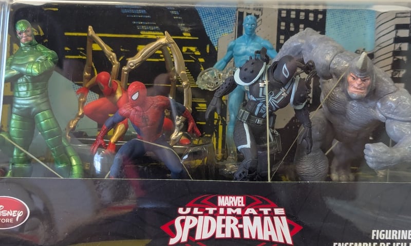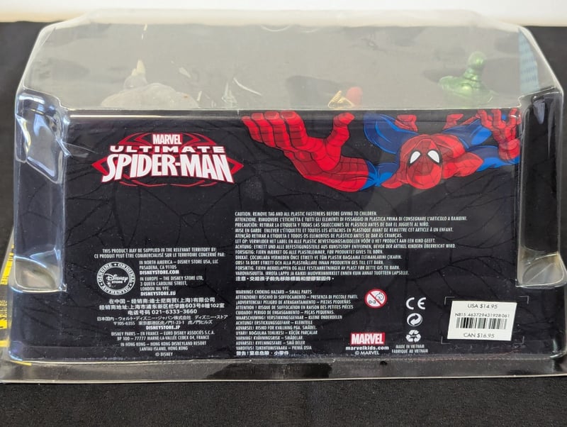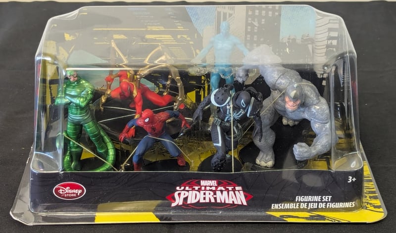 MARVEL ULTIMATE SPIDER-MAN FIGURINE SET - DISNEY STORE EXCLUSIVEDisney Store Exclusive Marvel Ultimate Spider-Man Figurine Ensemble Set Featuring Six Articulated Action Figures. Set Includes Dynamic Posed Figures With Detailed Paint Applications And Costume Accuracy. Original Clear Plastic Display Case With Yellow And Black Themed Backdrop Featuring Stylized Cityscape Graphics. Package Marked "3+" For Age RecommendationCondition: Good - Refer To Images584525+27