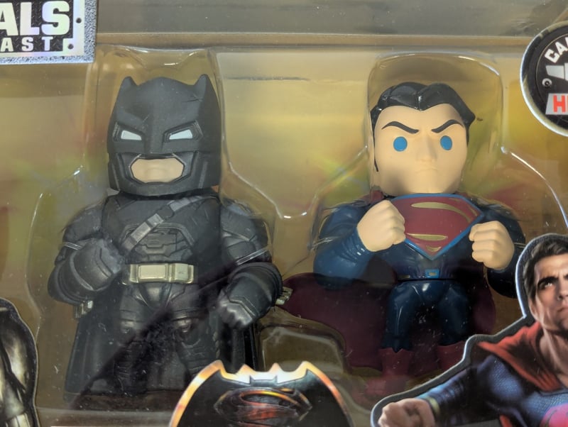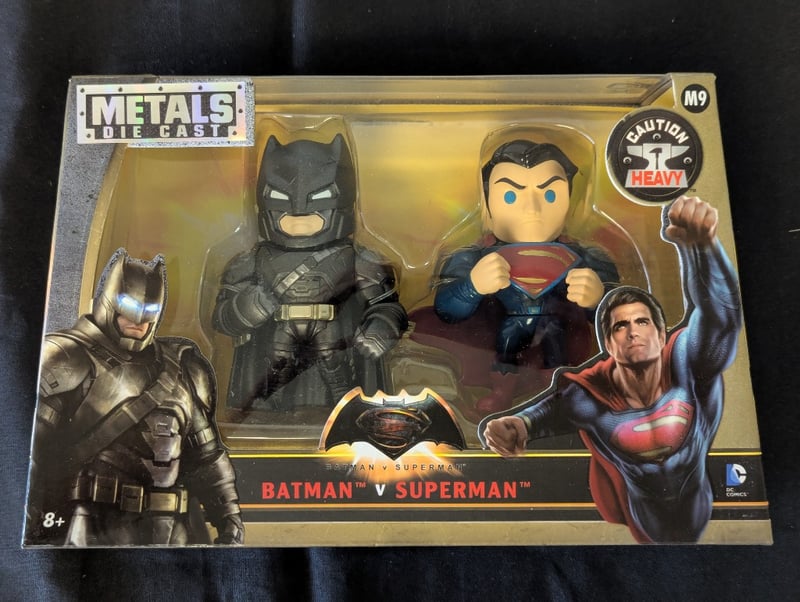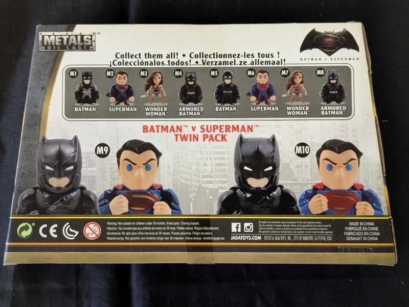 METALS DIE CAST BATMAN V SUPERMAN TWIN PACK M9 COLLECTIBLE FIGURESJada Toys Metals Die Cast Batman V Superman Twin Pack Featuring Articulated M9 Batman In Dark Metallic Finish With Detailed Armor Plating And M9 Superman In Classic Blue And Red Costume. Includes Collectible Packaging Showing Full M1-M10 Series LineupCondition: Good - Refer To Images584525+39