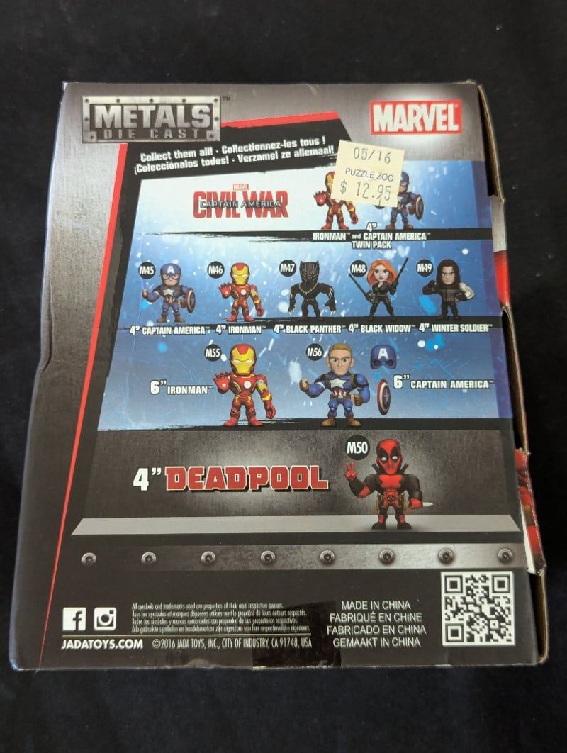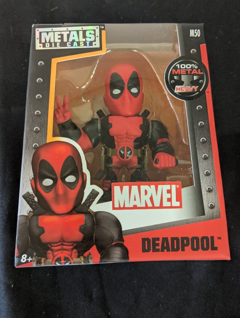 METALS DIE CAST MARVEL DEADPOOL M50 ACTION FIGUREJada Toys Metals Die Cast 4" Deadpool Figure (M50) From Marvel'S Civil War Collection. Features 100% Metal Heavy Construction With Articulated Joints. Includes Character Head Sculpt Detail And Signature Red/Black Costume Paint Application. Part Of Expandable Metals Die Cast Marvel Line With Variants Available.Condition: Good - Refer To Images584525+50