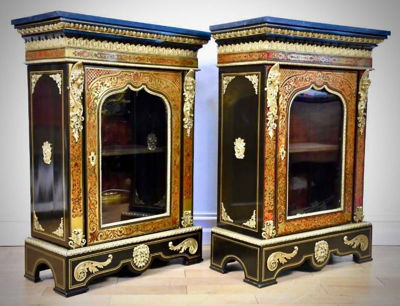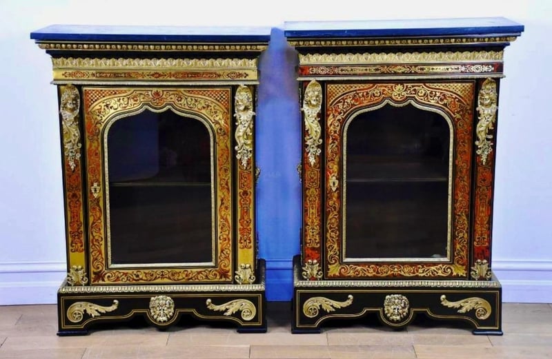 RARE PAIR (2) OF BOULLE PIER CABINETS