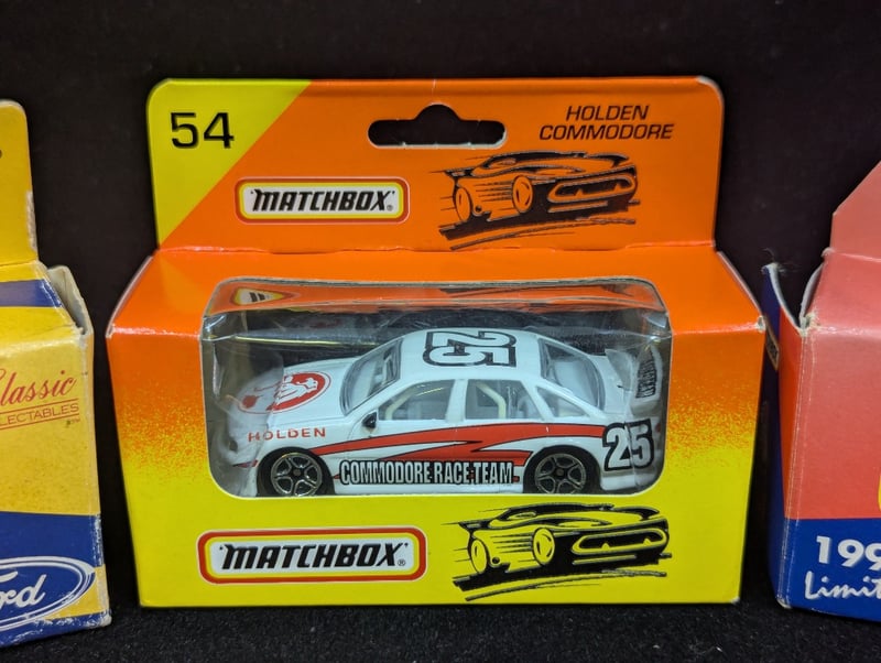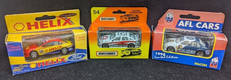 TWO MATCHBOX CARS AND HELIX MODEL CARIncludes 1998 Limited Edition Afl Cars Carlton Blues Falcon, Matchbox Holden Commodore #54, Helix Ford V8 Supercars Classic Carlectables584809+49