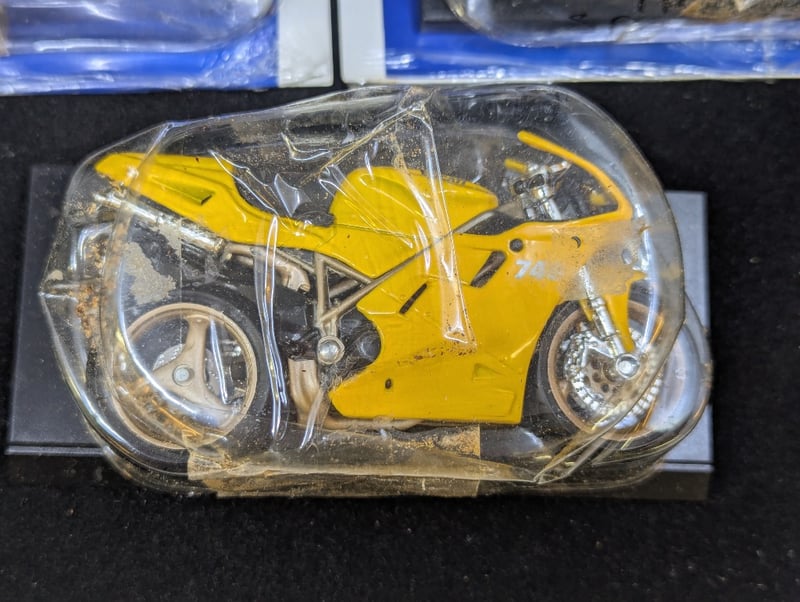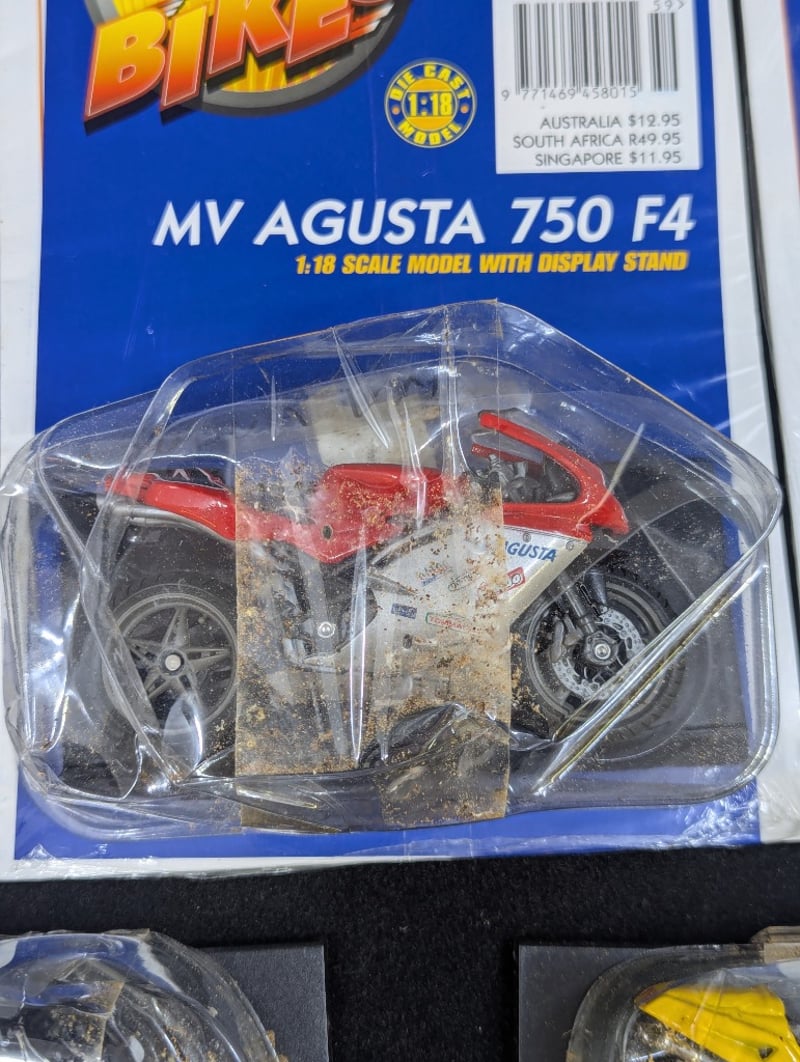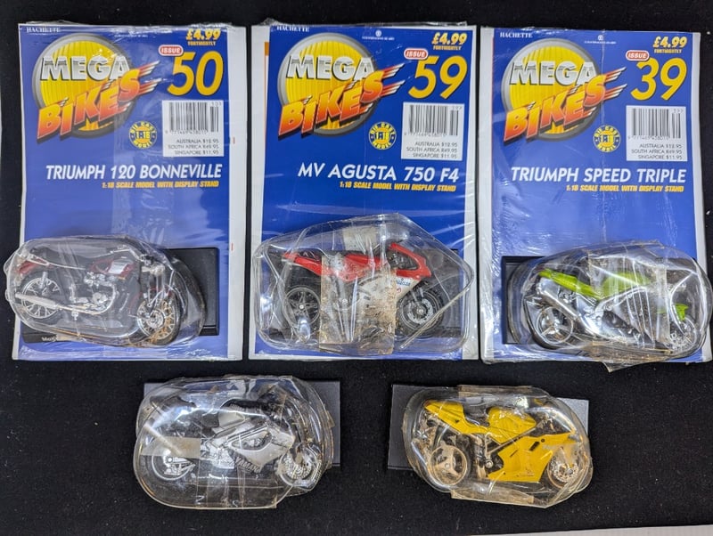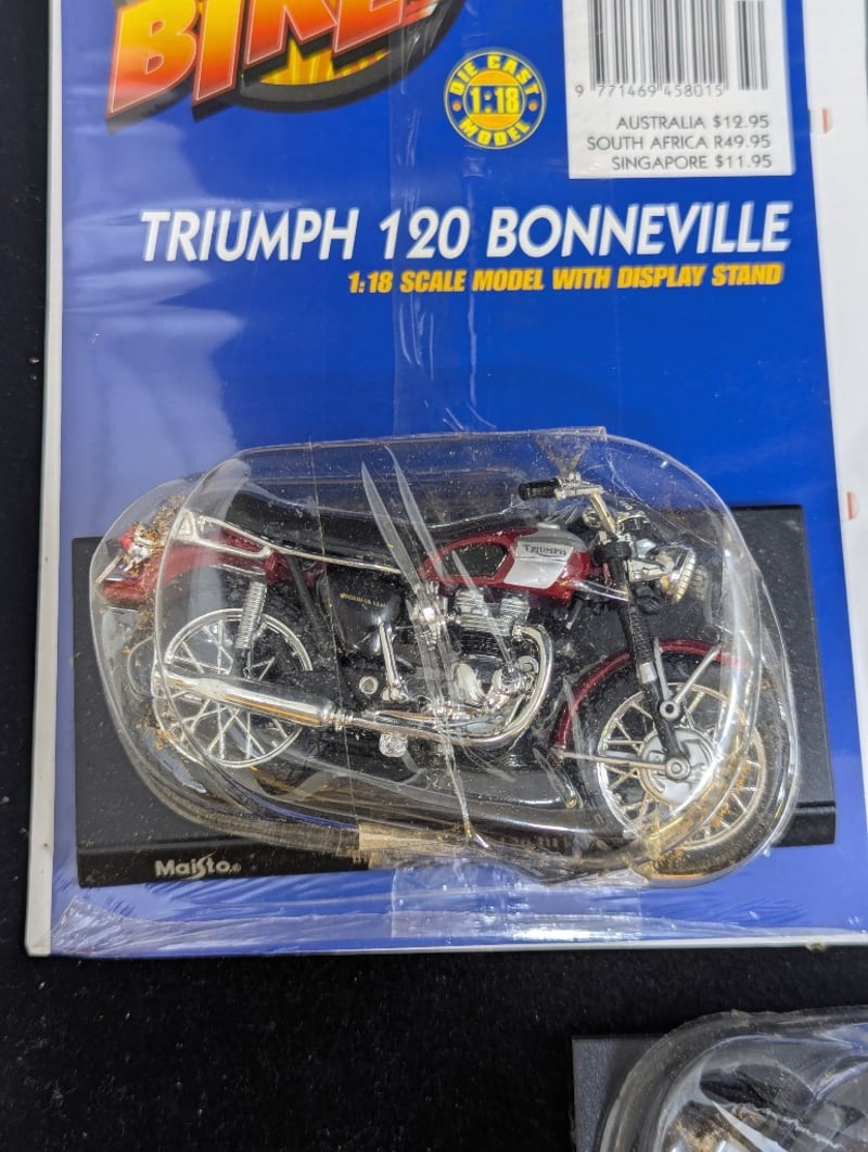 FIVE 1:18 SCALE MODEL MOTORBIKESIncludes Triumph 120 Bonneville, Mv Agusta 750 F4, Triumph Speed Triple, Yamaha 1000 Thunderace, Ducati 748584809+54