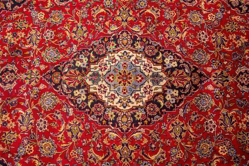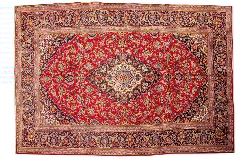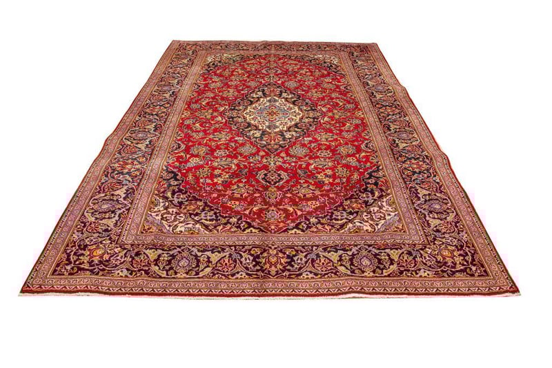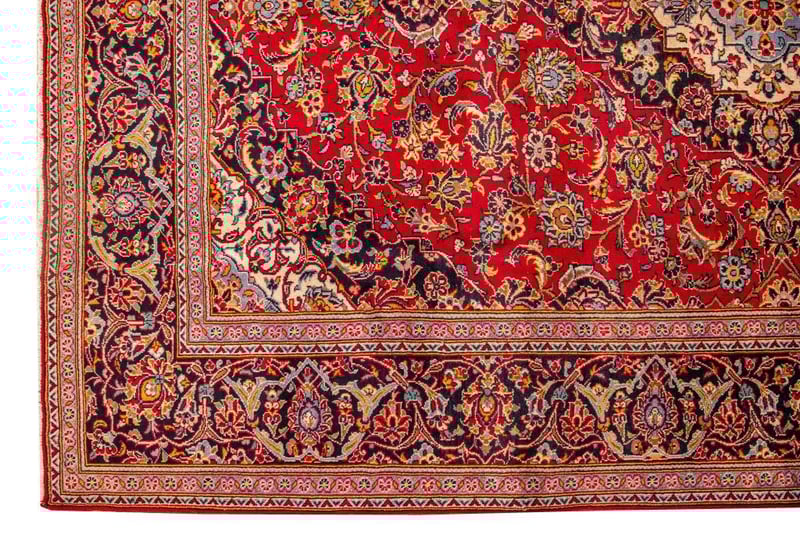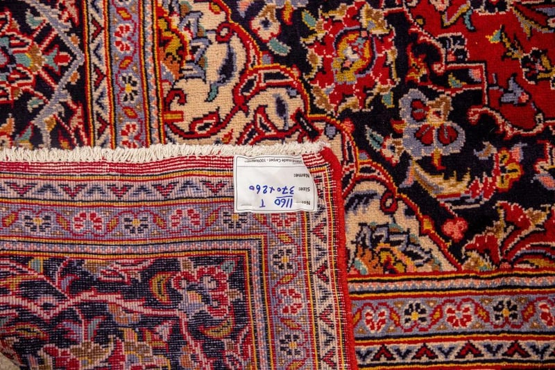 PERSIAN KASHAN CARPET100% Lambs Wool Polished Pile, Very Solid And Densely Hand Knotted. In A Traditional Design Of A Central Medallion In Soft Tones Of Navy. Sha Abbasi Palmettes In Tones Of Persian Blue With Red Border. Origin: Persia.Sizecm): 370X260 Circa 1980S Rrp: $5800Condition: Good - Refer To Images488197+16